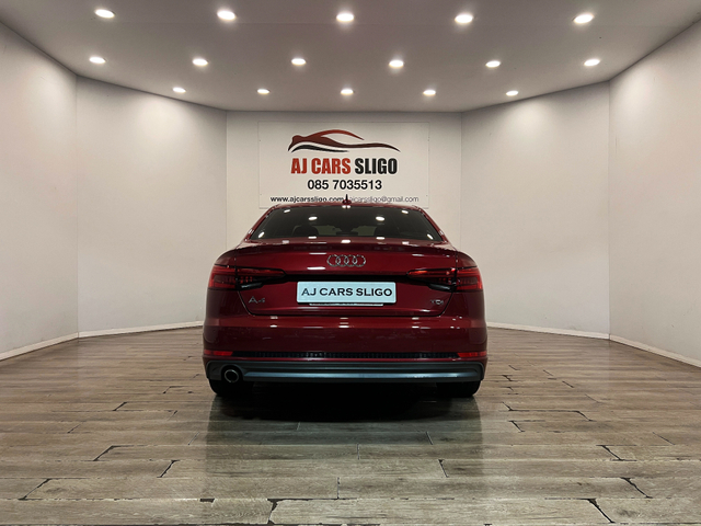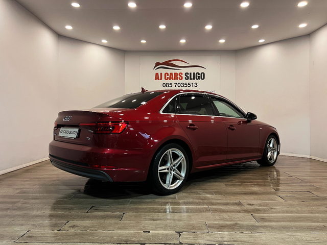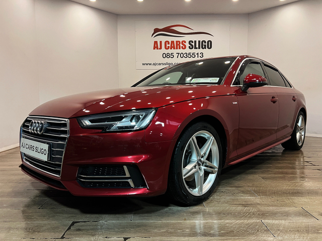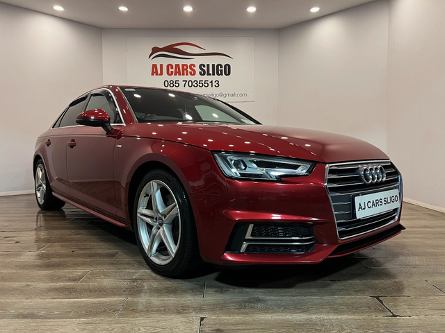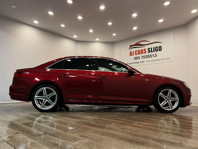 LOVELY AUDI A4 S-LINE 2.0TDI 150BHP 2017 2 owners from new Full service history 140,000 miles NCT 09/2027 Low road tax €190 per year Trade-ins welcome €16,950 with 3 months warranty Finance available from €299 p/m with €2,000 deposit APR from 7.9% Vehicle details Genuine Audi A4 S-Line 2.0 TDI 150BHP engine Manual gearbox Finished in rare Matador Red metallic Specification Half leather S-Line sport seats Satellite navigation Parking sensors Xenon headlights LED rear lights Audi MMI infotainment system Dual-zone climate control Leather multifunction steering wheel Bluetooth phone connectivity Auto lights & rain sensors Start/Stop system ISOFIX SD card / CD / AUX Electric windows & mirrors 071 930 4945 / 085 703 5513 www.ajcarssligo.com [email protected] Central Locking, Electric Windows, Airbag, Centre Armrest, Multi-function steering wheel, Satellite Navigation, Traction Control, Metallic Paint, Parking Sensors, Bluetooth, EBD, Isofix, Active Safety Braking / City Brake / Collision Alert, Stop/Start Button, External Devices Connectivity, Cup holders, Remote boot/hatch/rear door release, Stability control