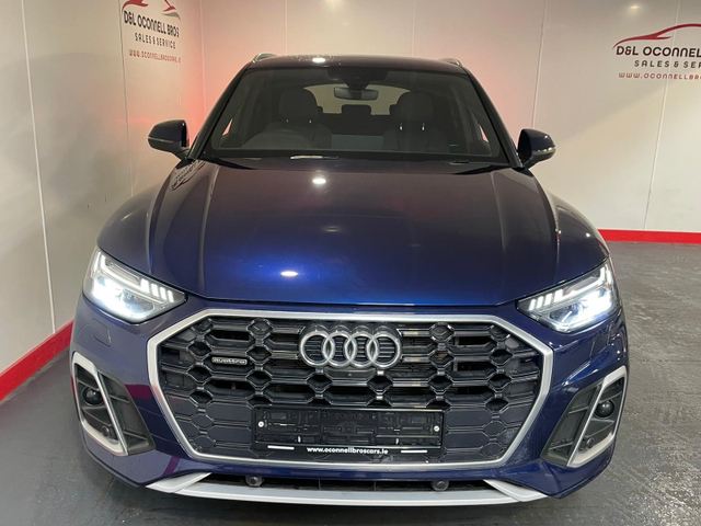 2023(231) Audi Q5 2.0 Petrol Hybrid 300BHP Quattro Ultra 50 TFSI E, Full S Line model, Navarra Blue metallic, One owner from new, Only 14K Miles (23k kms) Automatic S tronic transmission, First Audi service done, Interior Ambient Lighting, Cruise control, Touchscreen MMi Display, 19 S Line alloys, Heated front seats, 3 spoke leather steering wheel, Dual climate control front & rear, Satelite navigation preparation, Black S Line half leather half suede interior with S Line Embossment, Apple car play/Android auto, Xenon headlights, Automatic lights & wipers, Drive select option, Air con, Sport seats, Electric tailgate, Lane assist, Adaptive cruise control, Auto dimming lights, Electric push button start/ stop, Keyless entry, Rear privacy glass, Parking sensors & display, LED rear lights, Mobile phone preparation-Bluetooth, Dynamic rear lights, Automatic 7 speed transmission, Dealer warranty included, Finance available over 3/4/5 years apply online www.oconnellbroscars.ie. 6 Month Warranty, Central Locking, Electric Windows, Airbag, Cruise Control, Rear Spoiler, Privacy Glass, Centre Armrest, Multi-function steering wheel, Roof Rails, Satellite Navigation, Traction Control, Metallic Paint, Anti-Theft System, Parking Sensors, Bluetooth, Isofix, Apple Car Play, Android Auto, Active Safety Braking / City Brake / Collision Alert, Stop/Start Button, 2 Keys, External Devices Connectivity, Cup holders, Remote boot/hatch/rear door release, Stability control