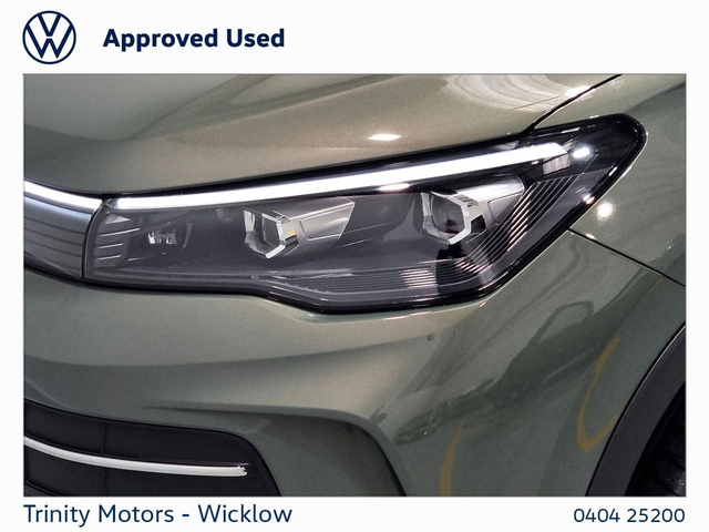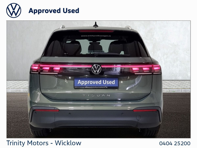 TRINITY VOLKSWAGEN ARE EXCITED TO OFFER THIS STUNNING VOLKSWAGEN TIGUAN SUV FINISHED IN CIPRESSINO GREEN METALLIC PAINTWORK AND IS COMPLEMENTED BY CLOTH SEATING. - IT HAS A BEAUTIFUL SPECIFICATION WHICH INCLUDES - 18'' BOLOGNA ALLOY WHEELS - METALIC ROOF RAILS - LED MATRIX HEAD LIGHTS - PARKING SENSORS FRONT AND REAR WITH PILOT PARKING - REAR VIEW CAMERA - DGS - AUTOMATIC TRANSMISSION WITH PADDLE SHIFT - KEY LESS START / STOP - 3 ZONE CLIMATE CONTROL - MF LEATHER STEERING WHEEL - APPLE CAR PLAY - ADAPTIVE CRUISE CONTROL - LANE ASSIST - FRONT ASSIST - HILL START ASSIST - ELECTRIC HEATED POWER FOLDING MIRRORS - CENTRE ARM REST FRONT AND REAR - USB C X 2 FRONT - USB C X1 REAR - LOW RATE FINANCE ARRANGED - DEPOSIT SECURES CAR - CONTACT A MEMBER OF OUR SALES TEAM TODAY ON 0404 25200 TO ARRANGE A TEST DRIVE - TRINITY VOLKSWAGEN DUBLIN ROAD WICKLOW. The vehicle information displayed above highlights the typical specification of the most recent model of this vehicle. We offer this information in good faith however cannot guarantee the accuracy of any specification/information supplied as the specification can vary. You must physically check the specification of the vehicle on site prior to purchase. The specification & features on this website do not form part of the buying contract.