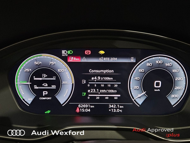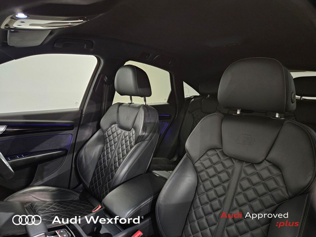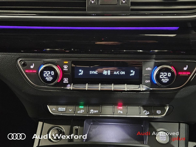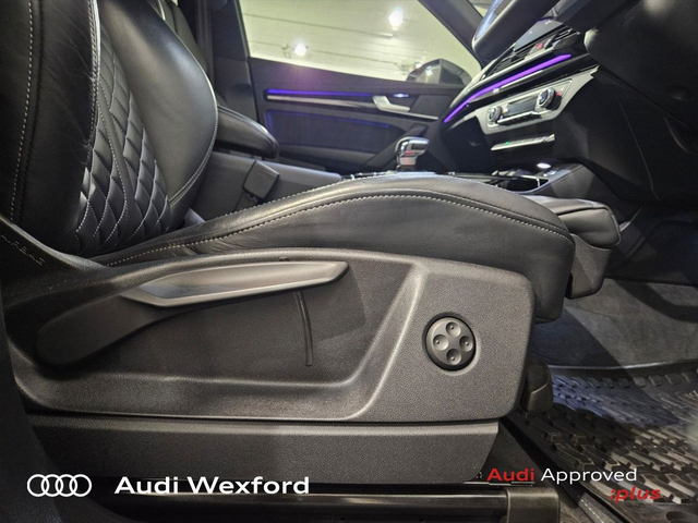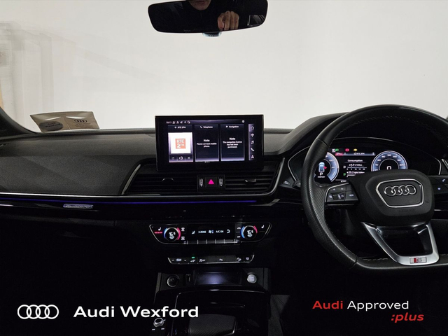 Audi Q5 50 TFSIe 299HP S tronic Quattro S Line €516 p/m • Audi Music Interface • Audi Sound System • Bang & Olufsen • Bluetooth Interface • Hands Free Kit • Mobile Phone Preparation-Bluetooth • Touchscreen Stereo • Audi Drive Select • Audi Stop/Start • Adaptive Cruise Control • Auto Handbrake • Cruise Control • Power Assisted Steering • Quattro Four Wheel Drive • Alloy Wheels • Black Styling Pack • Metallic Paint • Air Conditioning • Ambient Lighting • Armrest • Button Start-Stop • Electric Windows • Front/Rear Floor Mats • Multi-Function Steering Wheel • Onboard Computer • Privacy Glass • Heated Seats • Leather Interior • Leather Steering Wheel • Lumbar Support • Valcona Leather Upholstery • ABS • Active Lane Assist • Auto Lights and Wipers • Child Locks • Hill Hold Assist • Immobilizer • ISO Fix • Light and Rain Sensor • Multiple Airbags • Power Boot Opening and Closing • Reversing Sensors • Remote Central Locking • USB • Speed Limiter • Audi Connect • Audi Smartphone Interface • Keyless Go • Reverse Camera • USB charging ports
