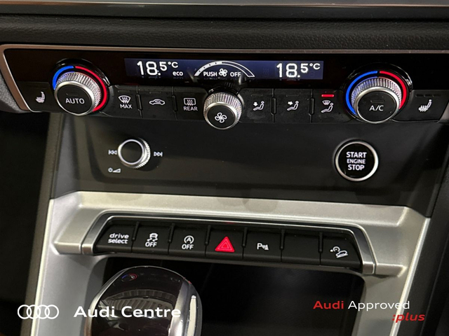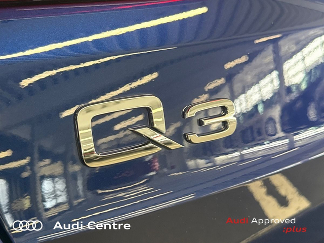 Audi Q3 SB 35TFSI 150 S-T SE • Audi Sound System • Audi Drive Select • Audi Stop/Start • Auto Handbrake • Cruise Control • 18"Alloys • High Gloss Pack • Metallic Paint • Ambient Lighting • Armrest • Automatic Air Conditioning • Climate Control • Electric Mirrors • Electric Windows • Front/Rear Floor Mats • Interior Mirror with Automatic Antiglare Action • Heated Seats • Lumbar Support • ABS • Daytime Running Lights • Electronic Stability Programme (ESP) • Hill Descent Assist • Immobilizer • Multiple Airbags • Reverse Camera • Comfort Suspension • Leather steering wheel, 3-spoke with multifunction plus • Fatigue Warning • Lane departure warning • Parking system plus • Audi Smartphone Interface • Pre sense city