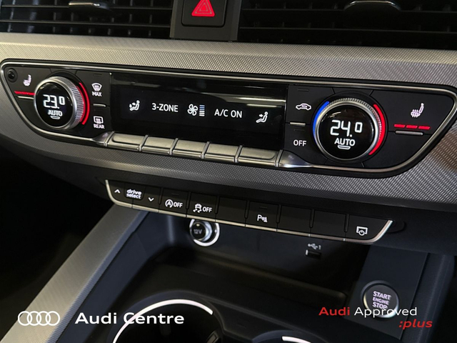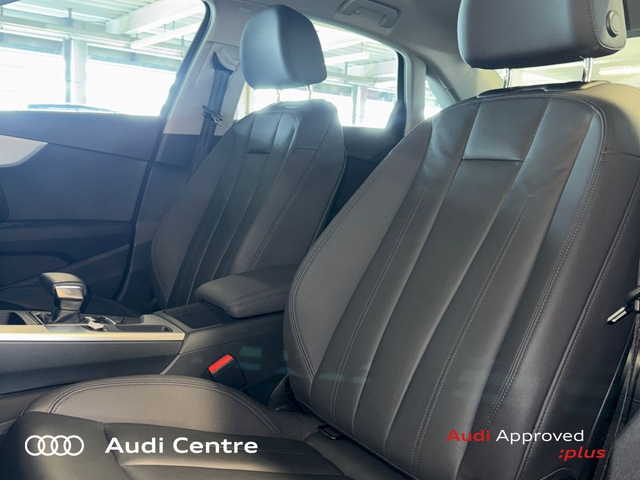 Audi A4 35 TFSI 150HP S Tronic SE • Audi Sound System • Audi Drive Select • Audi Stop/Start • Cruise Control • 18"Alloys • High Gloss Pack • Metallic Paint • Ambient Lighting • Armrest • Climate Control • Electric Mirrors • Electric Windows • Front/Rear Floor Mats • Interior Mirror with Automatic Antiglare Action • Heated Seats • Lumbar Support • ABS • Child Locks • Daytime Running Lights • Electronic Stability Programme (ESP) • Immobilizer • ISO Fix • Multiple Airbags • Reverse Camera • LED Rear lights • Leather steering wheel, 3-spoke with multifunction plus • Park assist plus • Audi Connect • Audi Smartphone Interface