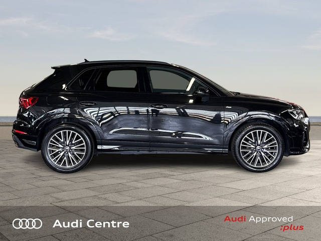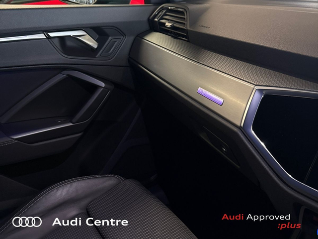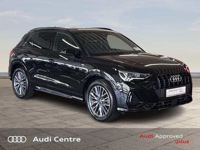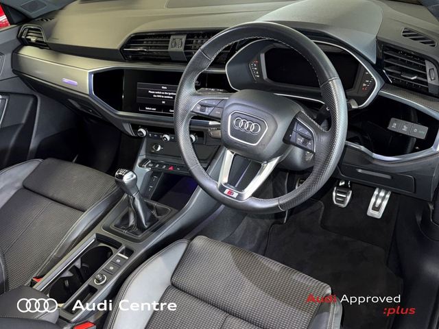Audi Q3 35 TDI 150HP S line • Bluetooth Interface • Audi Drive Select • Cruise Control • 18"Alloys • Black Styling Pack • Metallic Paint • S-Line Body Styling • S-Line Exterior Pack • Ambient Lighting • Automatic Air Conditioning • Climate Control • Dual Climate control • Electric Mirrors • Electric Windows • Front/Rear Floor Mats • Interior Mirror with Automatic Antiglare Action • 3 Spoke Leather Multifunction S-Line Steering Wheel • Headlining in Black Cloth • Lumbar Support • ABS • Child Locks • Daytime Running Lights • Electronic Stability Programme (ESP) • Hill Descent Assist • Immobilizer • LED Headlights • Light and Rain Sensor • Multiple Airbags • Sport Suspension • Front Sports Seats • Lane departure warning • Parking system plus • Audi Connect • Audi Smartphone Interface