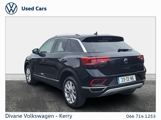 VOLKSWAGEN T-ROC STYLE 1.0TSI PETROL IN DEEP BLACK PEARL EFFECT CAMERA ELECTRIC BOOT €210 ROAD TAX. CALL FOR MORE INFO! • Anti collision system • IQ Head lights • 12v power outlet • Climate control • Android Auto • Apple CarPlay • Bluetooth • Emergency brake assist • Radio • Central locking • Remote central locking • Keyless entry • USB connection (front) • Immobilizer • Cruise control • Adaptive cruise control • Daytime running lights • Electric side mirrors • Electric windows • Electric handbrake • Traction control • Driver-side airbag • Passenger-side airbag • Lumbar support • Sports seats • Armrest • Auto lights (dusk sensor) • Hill hold assist • LED headlights • Isofix • Lane departure warning • Tyre pressure monitor • Touch screen display • Air conditioning • Dual zone climate control • ABS • Lane change assist • Ambient lighting • Parking assistance • Front parking sensors • Rear parking sensors • Remote boot release • Roof rails • Seat belt warning • Side airbag • Speed limiter • Stability control • Start-stop system • Multi-function steering wheel • Emergency tyre repair kit • Voice control • Alloy wheels • Rain sensor • Digital instrument panel • Leather steering wheel • Full Service History • VW Bank Finance Available