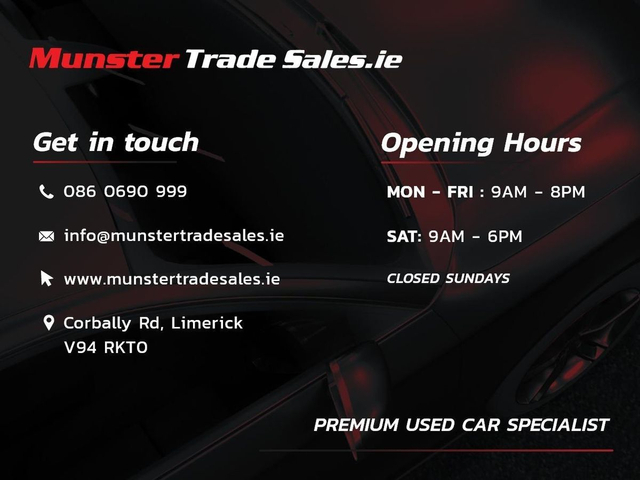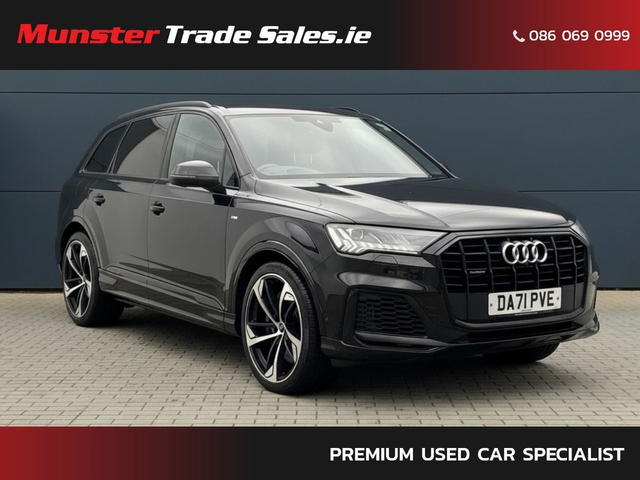 2022 Audi Q7 55 TFSI e S Line Black Edition Quattro Stunning example finished in Mythos Black Metallic with Black Valcona Leather Interior and 22” Audi Sport Alloys. This is a high-spec plug-in hybrid Q7 with Audi’s 3.0 V6 TFSI e system (280kW), paired with automatic gearbox and Quattro AWD. Key Details: • 2022 • Plug-In Hybrid (PHEV) • Automatic • Quattro All-Wheel Drive • 22” Audi Sport Alloy Wheels • Adaptive Air Suspension Sport • Excellent condition Features: • S Line Black Edition Styling • Matrix LED Headlights • Dynamic LED Rear Lights • Black Styling Pack • Privacy Glass • Electric Tailgate • Audi Drive Select Interior: • Black Valcona Leather (S Embossed) • Heated Front Seats • Electric Memory Seats • Ambient Lighting • Flat-Bottom Sport Steering Wheel • 3-Zone Climate Control Technology: • MMI Navigation Plus • Virtual Cockpit • Apple CarPlay / Android Auto • Bluetooth & DAB Radio Driver Aids: • 360° Cameras • Reverse Camera • Lane Assist • Audi Pre Sense Front • Cruise Control • Traffic Sign Recognition Condition: • Fully serviced • Fully inspected • Professionally valeted • Ready to drive Munster Trade Sales – Limerick Eircode: V94 RKTO www.munstertradesales.ie Opening Hours: Mon–Fri: 9am–8pm Sat: 9am–6pm Call or message anytime to arrange a viewing. • Full vehicle Service & inspection • Professionally valeted & Detailed • Car History Checked • Finance Available