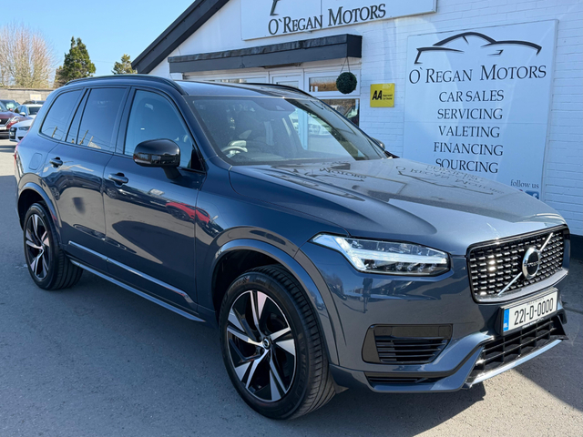 221 VOLVO XC90 R-DESIGN T8 RECHARGE 7-SEATER AWD * FINISHED IN DENIM BLUE * 20" DIAMOND CUT ALLOYS * DARK EDITION STYLING PACK * LED ADAPTIVE HEADLIGHTS * LED DAYTIME RUNNING LIGHTS * SUN PROTECTION GLASS * MEDIA PACK / SAT NAV / BLUETOOTH * APPLE CARPLAY/ANDROID AUTO * HEATED HALF LEATHER MEMORY SEATS * HEATED MULTIFUNCTION STEERING WHEEL * REVERSING CAMERA * CRUISE CONTROL / SPEED LIMTER * AUTO LIGHTS / AUTO WIPERS * ONCOMING LANE MITIGATION * 12 MONTHS AA MEMBERSHIP! * 101 POINT AA INSPECTION CHECK! * UP TO 24 MONTHS WARRANTY AVAILABLE! AS A CREDIT INTERMEDIARY FOR SEVERAL FINANCE LENDERS WE HAVE OPTIONS AVAILABLE TO SUITS ALL CREDIT PROFILES! FOR AN EASY & NO OBLIGATION APPLICATION, PLEASE SEE WWW.OREGANMOTORS.IE **NATIONWIDE DELIVERY AVAILABLE**