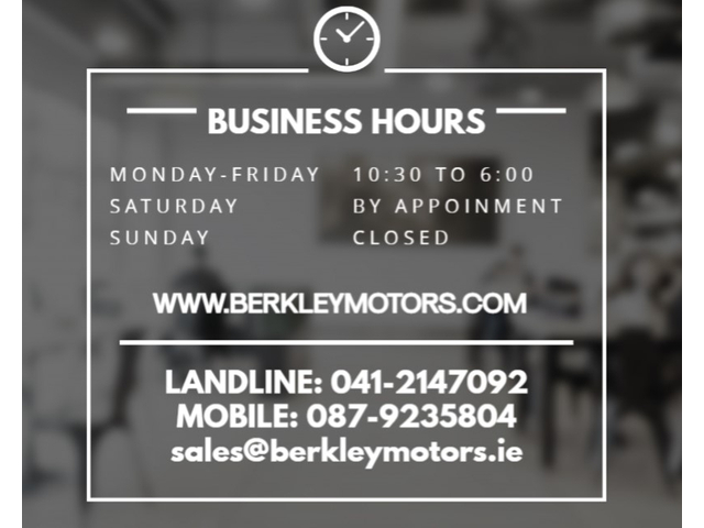 | Contact info: | Berkley Motor Company Begrath Tullyallen Drogheda County Louth Ph: 041-2147092 |