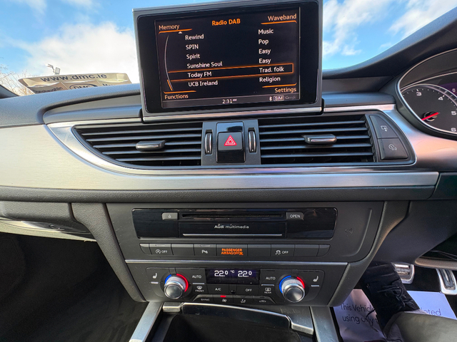 Call Adam or Barry-John on 0862062981 or 01 8017777 to find out more about this stunning Audi A6 S-Line Auto, We can offer a click and deliver or click and collect service if a customer wishes, This car comes fully serviced, warrantied, trade ins accepted and finance can be arranged. We are a SIMI approved dealership who specializes in premium cars and we are located just 10 minutes from Blanchardstown Shopping Centre just off the M3. Our Eircode is A85 DK15. We are located on Dunshaughlin Main street on the Navan side of the village. Bluetooth,CD Player,Centre Armrest,Climate Control,Cruise Control,Electric Mirrors,Electric Seats,Electric Windows,Electronic handbrake,Folding rear seats,Heated Seats,Six speed transmission,Sports Seats,Air Conditioning,Anti-Theft System,Central Locking,EBD,Fog Lamps,Multiple Air Bags,Parking Sensors,Rain Sensors,Remote Central Locking,Traction Control,Xenon Lights,Brake Assist System,Alloy Wheels,Metallic Paint,Dual Zone Climate Control,Half Leather Seats,Heated Front Seats,Multi-Function Steering Wheel,Sat Nav,Selectable Drive Mode,Sport-Tuned Suspension,Stop/Start Button,Automatic Lights,Automatic Wipers,Daytime Running Lights,Engine Immobiliser,Hill-Start Assist,Isofix Points,Leather Upholstery,Service History,USB Connection,AUX Connection,Cup Holders