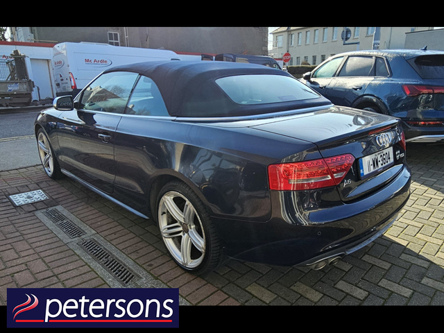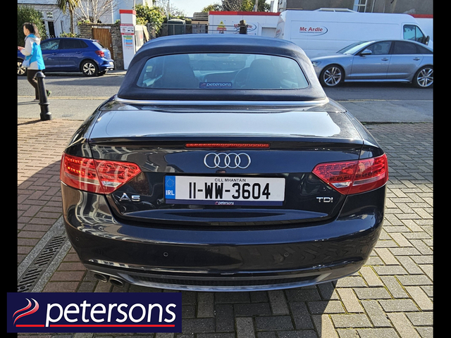 AUDI A5 CABRIOLET 2.0 TDI S-LINE, FULLY AUTOMATED PUSH BUTTON RETRACTABLE ROOF, FULL BLACK LEATER INTERIOR, DUAL ZONE CLIMATE CONTROL, BLUETOOTH, CD PLAYER, MULTIFUNCTION STEERING WHEEL, REAR PARKING SENSORS, ELECTRONIC HANDBRAKE, AUTOMATIC LIGHTS, DAYITME LIGHTS, ELECTRIC WINDOWS AND MIRRORS, REMOTE CENTRAL LOCKING, ALLOY WHEELS. WELCOME TO PETERSONS - PETERSONS HAVE BEEN SELLING CARS SINCE 1970s FROM OUR LOCATION ON TIVOLI ROAD IN DUN LAOGHAIRE, WITH OUR VAST EXPERIENCE AND KNOWLEDGE ALL OUR CARS GO THROUGH A METICULOUS INSPECTION PROCESS, WE OFFER A VAST RANGE OF PRE-OWNED VEHICLES THAT ARE CHOSEN WITH OUR CUSTOMERS NEEDS IN MIND, CONTACT ANDY OR PATRICK @ SALES ON 01-2806917 TO ARRANGE A TEST DRIVE. Air Conditioning, Central Locking, CD Player, Electric Windows, Airbag, Alloy Wheels, Electric Mirrors, Fog Lamps, Immobiliser, Full Leather, Sports Seats, Automatic Lights, Centre Armrest, Multi-function steering wheel, Climate Control, Traction Control, Metallic Paint, Multiple Air Bags, Anti-Theft System, Parking Sensors, Bluetooth, Remote Central Locking, EBD, Electronic handbrake, Isofix, History Checked, Finance Checked, Motorised Tailgate, Active Safety Braking / City Brake / Collision Alert, Dual Zone Climate Control, Daytime Running Lights, External Devices Connectivity, Cup holders, Stability control