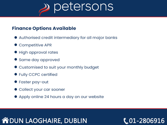 | Contact info: | Peterson Cars Tivoli Road Dun Laoghaire County Dublin Ph: 01-2806916 / 01-2806917 |