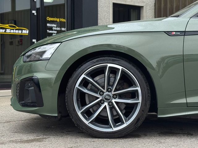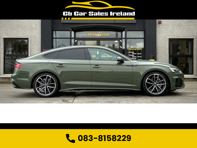 2023 AUDI A5 S LINE SPORTBACK 35 TDI 161 BHP 1 Owner from new, 2.0 Diesel Model, Covered 34k miles, Finished in District Green, Key Features include 19'' Factory fitted alloy wheels Black Edition Styling Front and Rear Parking sensors Reversing camera Half Leather S Line Interior Flat Bottom S Line steering wheel Heated front seats Virtual cockpit / Sat Nav DAB Radio / Bluetooth Apple / Android Car Play AUDI Drive Mode Select Electric Operated Tailgate ISOFIX Child seat Points And so much more.. Call today to arrange a test drive Tailored finance packages available to suit your needs Comprehensive warranty on all cars Trade ins welcome Delivery to North and South of Ireland if required MOT Expires February 2027 VRT €8,553 VRT NOX €500 Total price into ROI €43,700 Central Locking, Electric Windows, Airbag, Privacy Glass, Centre Armrest, Multi-function steering wheel, Satellite Navigation, Traction Control, Metallic Paint, Anti-Theft System, Parking Sensors, Bluetooth, Isofix, Active Safety Braking / City Brake / Collision Alert, Stop/Start Button, External Devices Connectivity, Cup holders, Remote boot/hatch/rear door release, Stability control