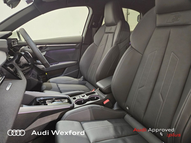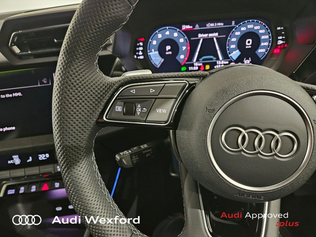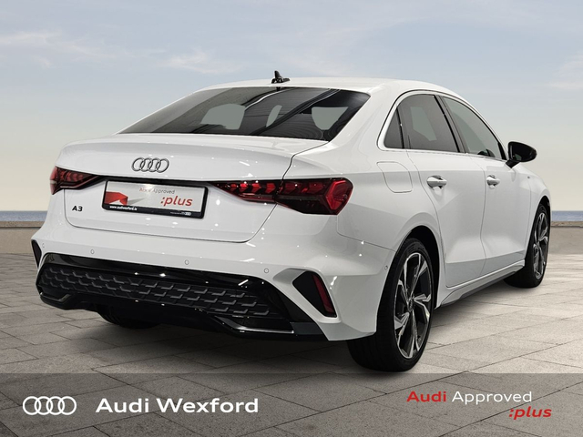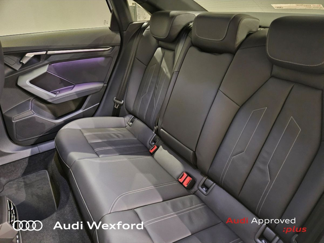 Audi A3 Audi A3 Saloon S line TFSI 110 kW S tronic *NEW CAR AVAILABLE FOR IMMEDIATE DELIVERY* • Audi Music Interface • Bluetooth Interface • Hands Free Kit • Touchscreen Stereo • Audi Stop/Start • Adaptive Cruise Control • Cruise Control • Alloy Wheels • Front Fog Lights • S-Line Body Styling • Space Saver Spare Wheel • Tinted Windows • Air Conditioning • Armrest • Automatic Air Conditioning • Button Start-Stop • Climate Control • Dual Climate control • Electric Windows • Front Footwell Illumination • Front/Rear Floor Mats • Multi-Function Steering Wheel • Privacy Glass • Rake/Reach Adjustable Steering Column • Tinted Privacy Glass to Rear of B-Post • Heated Seats • Leather Interior • Lumbar Support • ABS • Active Lane Assist • Alarm • Anti-Lock Brake System • Anti Theft System • Auto Lights and Wipers • Child Locks • Daytime Running Lights • Front and Rear Park Assist • High Beam Assist • Hill Hold Assist • Immobilizer • ISO Fix • Multiple Airbags • Rear Park Assist • Reverse Camera • Reversing Sensors • Front and Rear Park Sensors • Audi Lane Assist • Audi Smartphone Interface • Pre sense city • Reverse Camera • USB charging ports