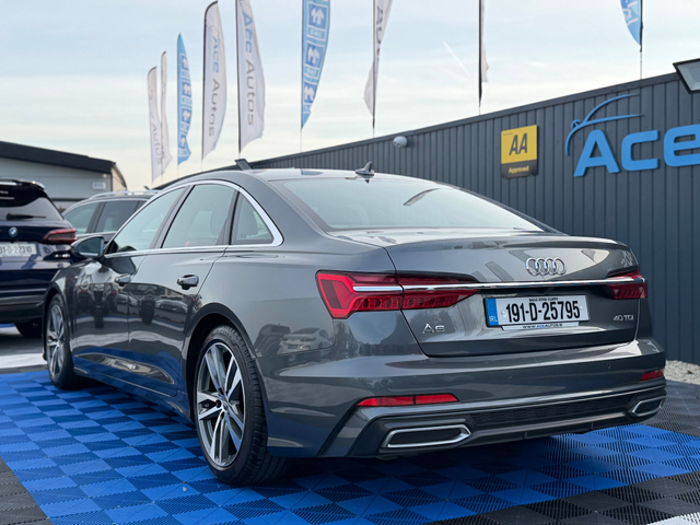 CAR NUMBER - 1876 CAR ID - 191D25795 Welcome to Ace Autos, an AA & SIMI Approved Dealership. We are one of Irelands leading providers of quality used Cars. All of our Cars are fully inspected by our AA Approved Mechanics and all vehicle's are Cartel History checked and greenlight verified. We also supply Auction sheets to verify Mileage / History on our Japanese Imports. Take a look at our new arrival, This 2019 AUDI A6 S-LINE LIMO - 2.0L DIESEL - AUTO - 12M WARRANTY This car will be sold on Irish Plates, Fully Serviced, Valeted, NCT tested and has 12 Month warranty option available. **12 MONTH WARRANTY ONLY €295** We offer Competitive & Tailored Finance options. OFFICE 045- 579026 LOCATION OSBERSTOWN BUSINESS PARK, NAAS, CO KILDARE Please visit our website - "BUYING INFORMATION" When shopping at Ace Autos. WWW.ACEAUTOS.IE Features Include - 3 Month Warranty, 6 Month Warranty, 12 Month Warranty, Trade in accepted, Air Conditioning, Central Locking, CD Player, Immaculate condition, Electric Windows, Airbag, Alarm, Alloy Wheels, Cruise Control, Electric Mirrors, Immobiliser, Leather Upholstery, Full Leather, Privacy Glass, Sports Seats, Heated Seats, Automatic Wipers, Automatic Lights, Centre Armrest, Multi-function steering wheel, Climate Control, Satellite Navigation, Traction Control, Metallic Paint, Multiple Air Bags, Anti-Theft System, Parking Sensors, Bluetooth, Remote Central Locking, EBD, Electronic handbrake, Isofix, Hill holder, Roadside assistance, History Checked, Finance Checked, Keyless Entry, Heated Front Seats, Reversing Camera, Wireless Smartphone Control, Active Safety Braking / City Brake / Collision Alert, Stop/Start Button, Touch Screen Media Control, Drive Mode Selector, Dual Zone Climate Control, Daytime Running Lights, External Devices Connectivity, Cup holders, Remote boot/hatch/rear door release, Stability control