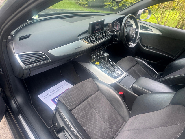 2015 AUDI A6 3.0TDI V6 QUATTRO AUTOMATIC .. NCT,D 11/26 .. TAXED 07/26 .. ONLY 280 PER YR ROAD TAX .. CAR WILL BE SOLD FULLY SERVICED AND VALETED .. EXCELLENT CONDITION INSIDE AND OUT .. PRICED TO SELL AT 13,899 PH 087 2688300 OR 086 8966222 TO ARRANGE A VIEWING ..WHATSAPP VIDEO AVAILABLE ON REQUEST .. NATIONWIDE DELIVERY CAN BE ARRANGED .. ALL DEBIT/CREDIT CARDS ACCEPTED . OVER 70 AUTOMATIC,S IN STOCK Air Conditioning, Central Locking, CD Player, Immaculate condition, Electric Windows, Airbag, Alloy Wheels, Cruise Control, Fog Lamps, Immobiliser, Rear Spoiler, Automatic Wipers, Automatic Lights, Centre Armrest, Luggage Cover, Multi-function steering wheel, Roof Rails, Climate Control, Satellite Navigation, Traction Control, Metallic Paint, Multiple Air Bags, Anti-Theft System, Parking Sensors, Bluetooth, Remote Central Locking, EBD, Electronic handbrake, Folding rear seats, Isofix, History Checked, Finance Checked, Active Safety Braking / City Brake / Collision Alert, Stop/Start Button, Daytime Running Lights, 2 Keys, External Devices Connectivity, Cup holders, Remote boot/hatch/rear door release, Stability control