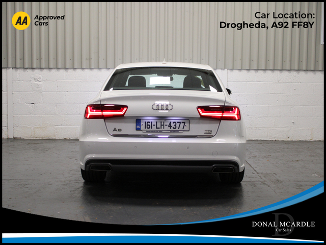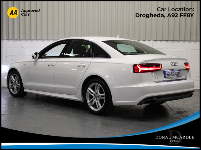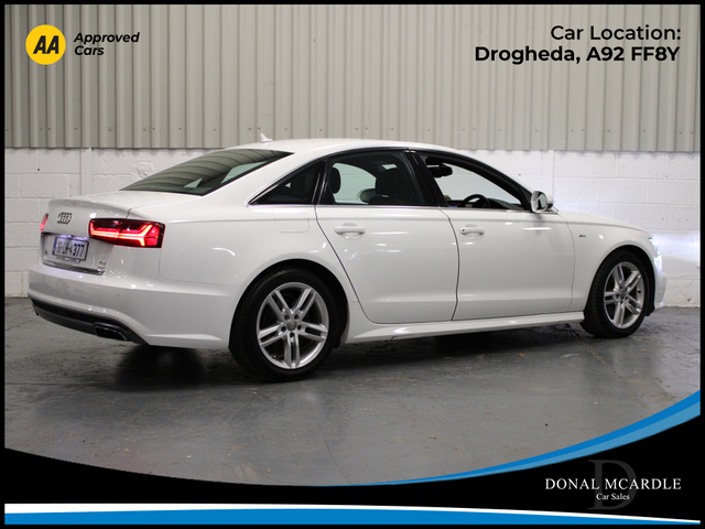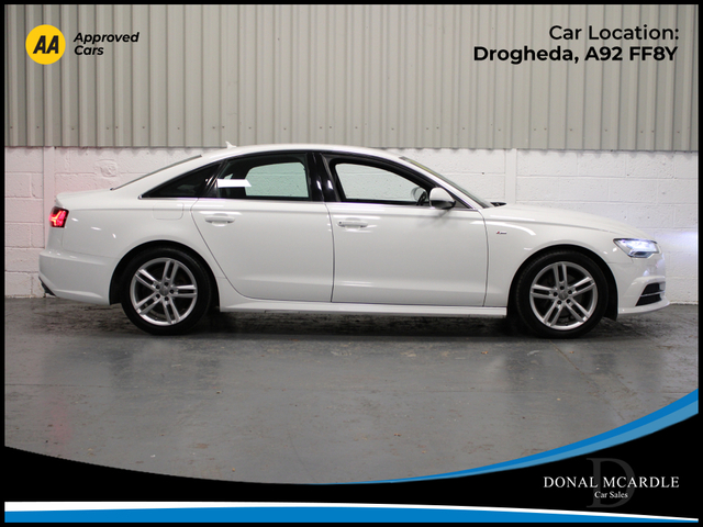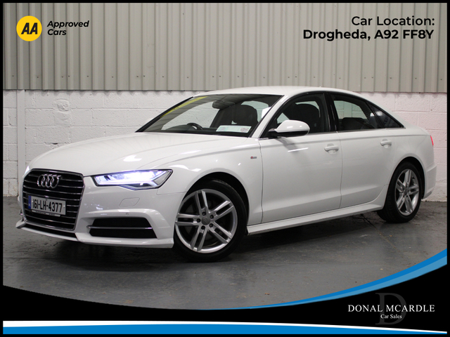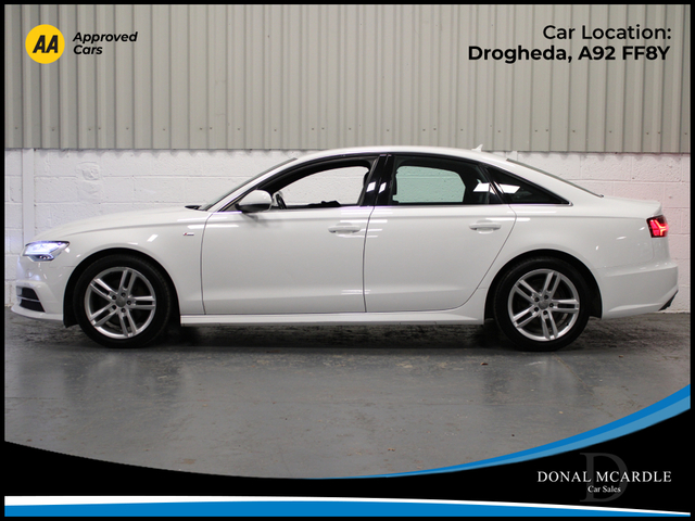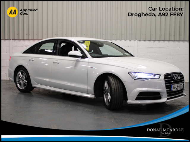 This 2016 Audi A6 S Line is a premium executive saloon that delivers a perfect balance of performance, efficiency, and comfort. Powered by a 2.0 TDI engine with 190PS and paired with a smooth automatic gearbox, it offers a refined and economical driving experience. The S Line specification adds a sporty edge with upgraded styling and a high-quality interior, providing excellent comfort for both driver and passengers. With a spacious cabin and large boot, its ideal for long journeys or everyday use. A stylish, reliable, and well-equipped saloon that represents great value in its class. For more details and to organise a test drive or any other questions please give Barry a call on 0879137581 we are always happy to help in any way that we can!!! At Donal McArdle Car Sales you can buy with confidence, with over 20 years experience in the motor trade we have built up a superb reputation for high quality cars and first class customer service. All our AA Approved Cars come with a 1YEAR AA Membership with full roadside assistance, 101 point inspection. We can source any car, colour or spec you desire. All our cars come VRT Paid on irish plates with a cartel report and will be delivered to you with a comprehensive warranty. For out of hours please call Barry on 0879137581. Finance arranged! We are an authorised credit intermediary for AIB Finance, Close Brothers, First Auto Finance and Bluestone finance. Call Barry on 0419844221/0879137581 to arrange a test drive today. Opening hours Mon Fri 9am 530pm. Sat 10am 3pm. Viewing anytime by appointment. Central Locking, Electric Windows, Airbag, Cruise Control, Fog Lamps, Rear Spoiler, Centre Armrest, Multi-function steering wheel, Roof Rails, Satellite Navigation, Traction Control, Metallic Paint, Anti-Theft System, Parking Sensors, Bluetooth, EBD, Isofix, Active Safety Braking / City Brake / Collision Alert, Stop/Start Button, External Devices Connectivity, Cup holders, Remote boot/hatch/rear door release, Stability control