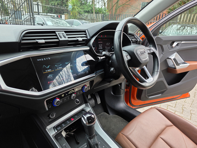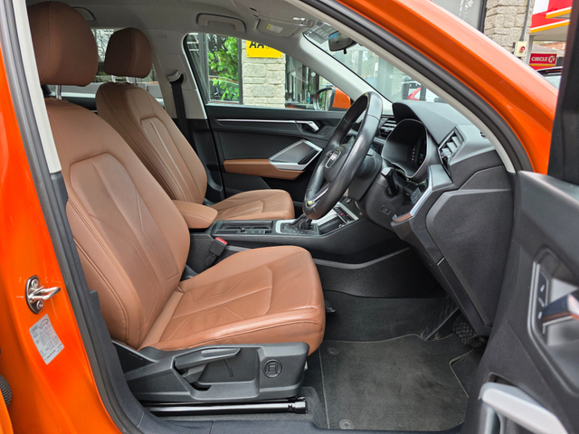 STUNNING 2022 AUDI Q3 35 TDI SE S-TRONIC. FULL AUDI SERVICE HISTORY. TWO KEYS. FINISHED IN PULSE ORANGE. SPEC -FULL NATURE BROWN LEATHER INTERIOR. -VIRTUAL DASH. -DUAL ZONE CLIMATE CONTROL. -AIR CON. -LED HEADLIGHTS. -PADDLE SHIFT. -HILL DECENT. -ALLOY WHEELS. -APPLE CAR PLAY. VIEWING BY APPOINTMENT ONLY 7 DAYS A WEEK Flexible times available to suit you. NATIONWIDE DELIVERY AVAILABLE Fast, reliable transport anywhere in Ireland. SIMI DEALER 2026 Fully accredited by the Society of the Irish Motor Industry. ONLINE FINANCE AVAILABLE Apply easily through our new userfriendly website. OPEN SINCE 2002 Over 20 years of trusted experience in the motor trade. FAMILY OWNED A business built on trust, integrity, and personal service. APPROVED SIMI DEALER Committed to the highest industry standards. CREDIT INTERMEDIARIES Working with numerous finance houses to offer tailored finance options. 2 Keys