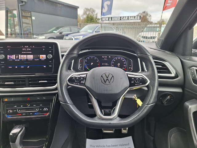 Stunning 2023 Volkswagen T-Roc 1.5 Petrol Automatic R-Line Edition Fully Loaded With Extras Finance Available 12 Months Warranty Host Of Extras Including: * Full R-Line Interior & Interior * Front Parking Sensors * Rear Parking Sensors * Apple Carplay * Android Auto * Rear Privacy Glass * Auto High Beam Led Headlights * Bluetooth Phone Connectivity * Bluetooth Media Player Central Locking, Electric Windows, Airbag, Fog Lamps, Rear Spoiler, Privacy Glass, Centre Armrest, Multi-function steering wheel, Roof Rails, Traction Control, Metallic Paint, Parking Sensors, Bluetooth, EBD, Isofix, Active Safety Braking / City Brake / Collision Alert, Stop/Start Button, External Devices Connectivity, Cup holders, Remote boot/hatch/rear door release, Stability control