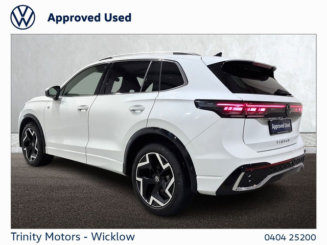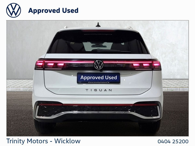 TRINITY VOLKSWAGEN ARE EXCITED TO OFFER THIS STUNNING VOLKSWAGEN TIGUAN SUV FINISHED IN PURE WHITE PAINTWORK AND IS COMPLEMENTED BY ALCANTARA / CLOTH SEATING. - IT HAS A BEAUTIFUL SPECIFICATION WHICH INCLUDES - 19'' COVENTRY ALLOY WHEELS - METALIC ROOF RAILS - LED PLUS HEAD LIGHTS - PARKING SENSORS FRONT AND REAR WITH PILOT PARKING - REAR VIEW CAMERA - DGS - AUTOMATIC TRANSMISSION WITH PADDLE SHIFT - KEY LESS START / STOP - 3 ZONE CLIMATE CONTROL - HEATED FRONT SEATS WITH MASSAGE FEATURE - HEATED MF LEATHER STEERING WHEEL - APPLE CAR PLAY - ADAPTIVE CRUISE CONTROL - LANE ASSIST - FRONT ASSIST - HILL START ASSIST - HIGH-BEAM CONTROL ASSIST - PARKING ASSIST PLUS - ELECTRIC HEATED POWER FOLDING MIRRORS - CENTRE ARM REST FRONT AND REAR - USB C X 2 FRONT - USB C X1 REAR - LOW RATE FINANCE ARRANGED - DEPOSIT SECURES CAR - CONTACT A MEMBER OF OUR SALES TEAM TODAY ON 0404 25200 TO ARRANGE A TEST DRIVE - TRINITY VOLKSWAGEN DUBLIN ROAD WICKLOW. The vehicle information displayed above highlights the typical specification of the most recent model of this vehicle. We offer this information in good faith however cannot guarantee the accuracy of any specification/information supplied as the specification can vary. You must physically check the specification of the vehicle on site prior to purchase. The specification & features on this website do not form part of the buying contract.