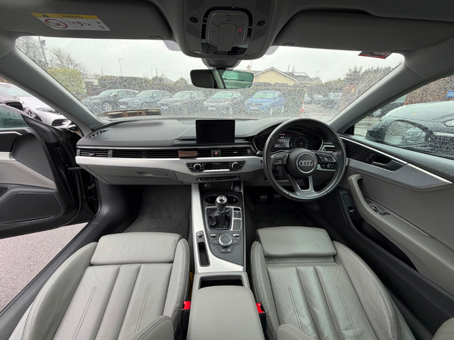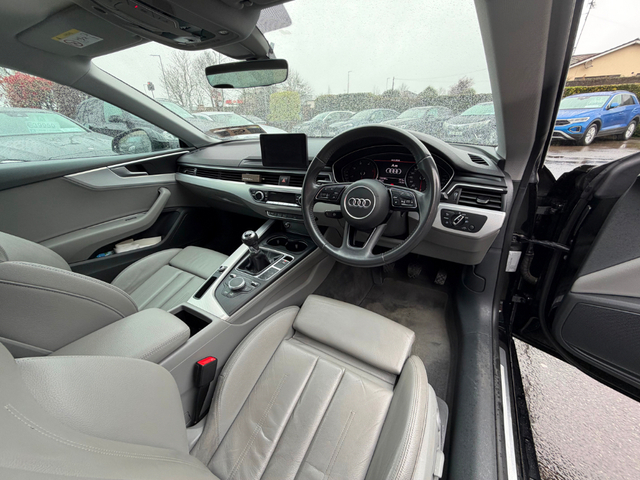 Call Adam or Barry-John on 0862062981 or 01 8017777 to find out more about this stunning Audi A5 Coupe, We can offer a click and deliver or click and collect service if a customer wishes, This car comes fully serviced, warrantied, trade ins accepted and finance can be arranged. We are a SIMI approved dealership who specializes in premium cars and we are located just 10 minutes from Blanchardstown Shopping Centre just off the M3. Our Eircode is A85 DK15. We are located on Dunshaughlin Main street on the Navan side of the village. Bluetooth,CD Player,Centre Armrest,Climate Control,Cruise Control,Electric Mirrors,Electric Seats,Electric Windows,Electronic handbrake,Folding rear seats,Heated Seats,Six speed transmission,Sports Seats,Air Conditioning,Anti-Theft System,Central Locking,EBD,Keyless Entry,Multiple Air Bags,Parking Sensors,Remote Central Locking,Traction Control,Brake Assist System,Alloy Wheels,Metallic Paint,All-Leather Seats,Heated Front Seats,Multi-Function Steering Wheel,Sat Nav,Selectable Drive Mode,Stop/Start Button,2 Keys Available,Automatic Wipers,Daytime Running Lights,Engine Immobiliser,Isofix Points,Leather Upholstery,Service History,USB Connection,AUX Connection,Cup Holders