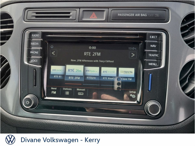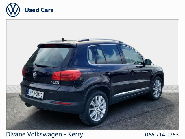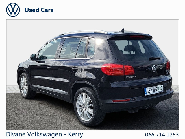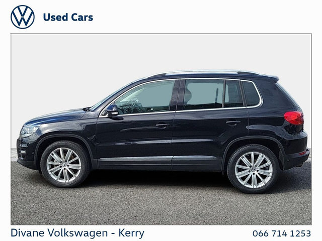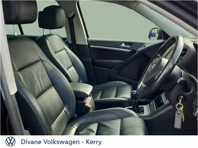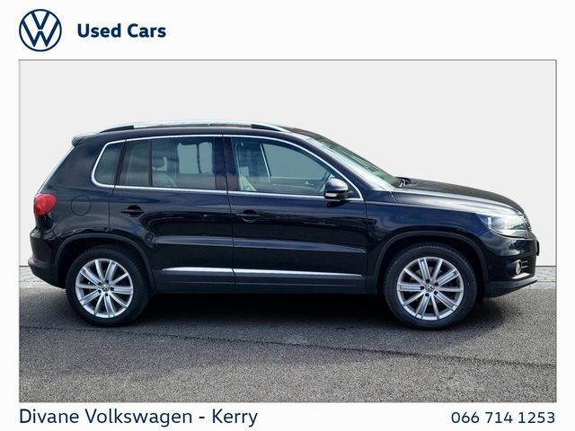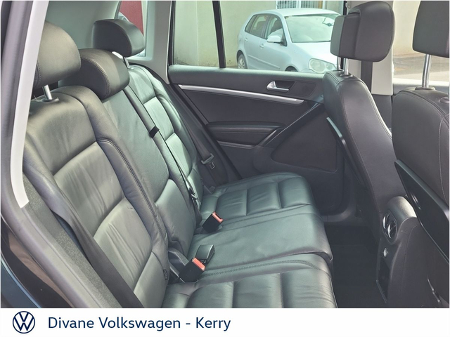 TIGUAN SPT 2.0TDI 110HP M6F IN DEEP BLACK PEARL EFFECT €270 ROAD TAX. CALL FOR MORE INFO! • Radio • CD • 12v power outlet • ABS • Remote boot release • Immobilizer • Cruise control • Traction control • Seat belt warning • Daytime running lights • Central locking • Roof rails • Side airbag • Leather interior • Armrest • Sports seats • Heated seats • Electrically adjustable seats • Lumbar support • Leather steering wheel • Multi-function steering wheel • Air conditioning • Electric side mirrors • Tinted windows • Rain sensor • Electric windows • Spare type • Stability control • Emergency brake assist • Tyre pressure monitor • Isofix • Electric handbrake • Hill hold assist • Anti collision system • Bluetooth • Start-stop system • Parking assistance • Front parking sensors • Rear parking sensors • LED headlights • Auto lights (dusk sensor) • Remote central locking • Keyless entry • Driver-side airbag • Passenger-side airbag • Climate control • Dual zone climate control • Alloy wheels
