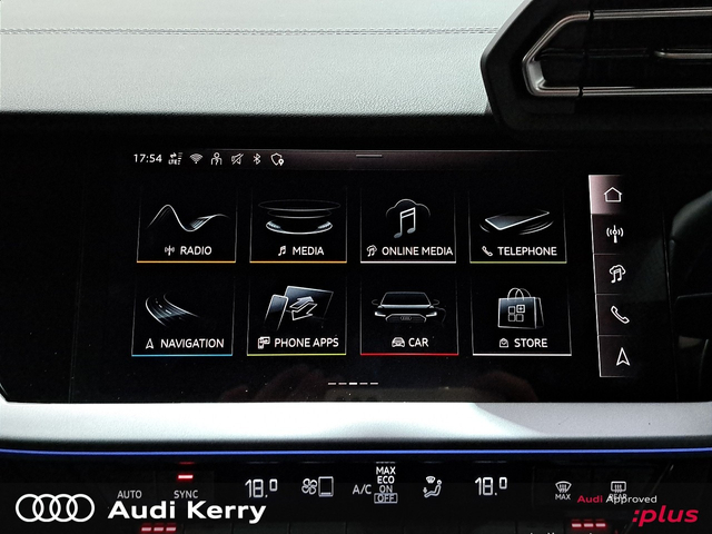 Welcome to Audi Approved plus Kerry where we offer an exceptional range of used Audi Approved Plus vehicles. To hit the standard of Audi Approved plus our cars go through an extensive multipoint check, all of our cars are history checked and every purchase comes with 12 months comprehensive warranty and Roadside Assistance. We also offer very competitive finance rates through Audi Finance. With over 30 years’ experience and 50,000 used cars delivered we have to knowledge to guide you through your buying experience. Call us now on 066 4003110 or e-mail [email protected] and you will not be disappointed. Vorsprung durch Technik! All Mileages are a guide and can vary upon viewing Air Conditioning,Ambient Lighting,Armrest,Bluetooth Phone,Cruise Control,Electric Folding Mirrors,Electric Power Source,Electric Windows,Engine Start Button,Internet Connection,MP3 Connection,Media/MP3 Player,Multifunction Display,Phone Preparation,Power Steering,Rear Armrest,Rear Heater Controls,Rear Mobile Phone,Remote Audio Controls,Satellite Navigation,USB/12V Power Outlets,Voice Control,Wireless Charging,Cup Holders,Load Cover/Parcel Shelf,Luxury Trim,ABS,Accident Data Recorder,Anti Collision System,Auto Handbrake,Automatic Hazard Lights,Brake Assist System,Centralised Locking,Collision Avoidance Braking,Cornering Lights,Daytime Running Lights,Emergency Call,Hill Start,Illuminated Entry System,Isofix Preparation,LED Lights,Lane Departure Warning,Load Restraint/Cargo Net,Multiple Airbags,Parking Assistance,Side Airbag,Smart Card Entry,Speed Limiter,Traction Control,Traffic Sign Recognition,Tyre Pressure Indicator,Chrome Package,Door Sill Protector,Privacy Glass,Spoiler,Anti-Corrosion Warranty,Energy Recuperation,Launch Control,Limited Slip Differential,Powertrain Warranty,Stop and Start System,Tyre Repair Kit