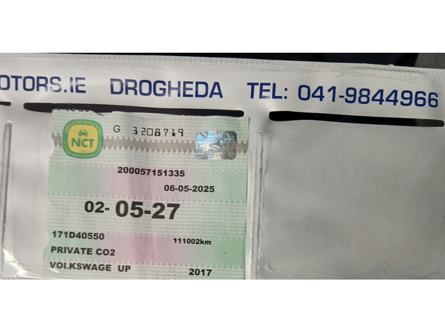 2017 VOLKSWAGEN UP! 1.0 : 60BHP 5DR : NCT 05/27 :