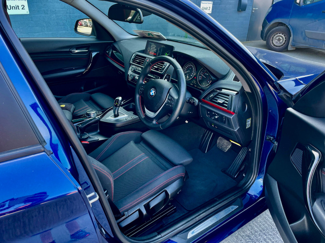 BMW 1-SERIES 2016 / SPORT LINE / - Driving mode: ECO PRO, NORMAL, SPORT - Multi-function steering wheel - Reverse camera - Bi-Xenon - Auto light - Fog lights - Dual zone climate control - Centre Armrest - Multiple Air Bags - Folding rear seats - Wireless Smartphone Control - Automatic windows - Automatic side mirrors - Remote central locking - Isofix - ABS - Child locks - Immobilizer - Alarm Dual zone climate control, Multi zone climate control, Heated windshield, Lumbar support, USB connection (front), Wifi, Adaptive cruise control, Parking camera, Front parking sensors, Rear parking sensors, Start-stop system, Digital instrument panel, Alloy wheels, Leather steering wheel, Spoiler, Sports seats, Tinted windows, Ambient lighting, Auto lights (dusk sensor), Daytime running lights, Lane change assist, Anti collision system, Alarm system, Emergency brake assist, Remote central locking, Immobilizer, Isofix, Lane departure warning, Tyre pressure monitor