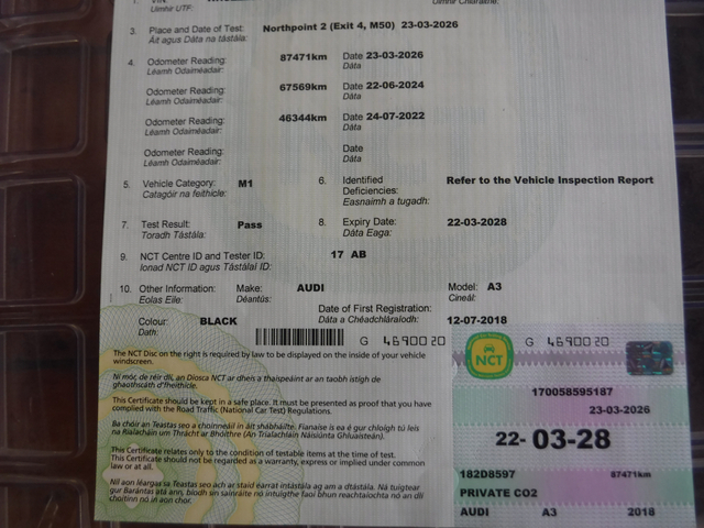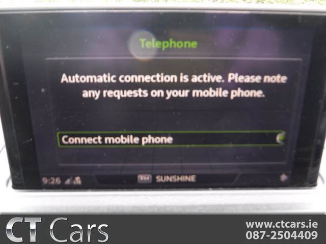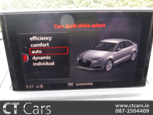 AUDI A3 1.5 AUTOMATIC S-TRONIC 150HP SALOON COMES IN MINT CONDITION WITH LOW MILEAGE AND WILL COME WITH A NEW NCT TILL 3/28 PLUS 6 MONTHS DEALER WARRANTY . THIS IS AN IRISH CAR FROM NEW WITH A LADY OWNER FOR THE LAST 4 YEARS . BANG&OLUFSEN MULTI SPEAKER SOUND SYSTEM PLUS ALL USUAL S-LINE EXTRAS . 6 Month Warranty, Trade in accepted, Central Locking, CD Player, Immaculate condition, Electric Windows, Airbag, Alloy Wheels, Cruise Control, Electric Mirrors, Immobiliser, Half Leather, Privacy Glass, Sports Seats, Automatic Wipers, Automatic Lights, Centre Armrest, Multi-function steering wheel, Satellite Navigation, Traction Control, Metallic Paint, Multiple Air Bags, Xenon Lights, Anti-Theft System, Parking Sensors, Bluetooth, Remote Central Locking, EBD, Electronic handbrake, Isofix, History Checked, Finance Checked, Apple Car Play, Android Auto, Keyless Entry, Heated Front Seats, Front Parking Sensors, Active Safety Braking / City Brake / Collision Alert, Adaptive Cruise Control, Stop/Start Button, Drive Mode Selector, Dual Zone Climate Control, Daytime Running Lights, 2 Keys, External Devices Connectivity, Cup holders, Remote boot/hatch/rear door release, Stability control
