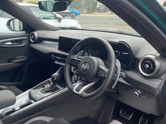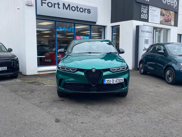 2025 Alfa Romeo Tonale , Veloce , 1.3i (280bhp) Phev , Plug-in Hybrid , Q4 All-Wheel-Drive , 500 Kilometres , Montreal Green Metallic , Perforated Black Alcantara and Leatherette Seats with Embroided Alfa Romeo Logo and Red Stitching VELOCE SPECITICATION INCLUDES; • Alfa dual stage valve suspension (DSV) • 19” Allloy Wheels – Dark Finish, Diamond Cut • Red painted brake calipers • Dark miron body kit with matt side & front inserts • Scudetto bezel in dark miron • Aluminium pedals & door sills • Black & white Alfa Romeo logo centre wheel caps • Column mounted aluminum shift paddles • Gloss black window surround • Privacy glass • Veloce badge in dark miron • Dual chrome exhaust tips • 10.25" Touchscreen & Bluetooth with Nav • 6 Airbags • Alfa Connect Box - “My Alfa Connect” app • 12.3" Full TFT Instrument Cluster • Apple Car Play / Android Auto • Alfa DNA With ESC Off (3 Modes + ESC Off) • 4 Way Electric Lumbar Adjustment - Driver • Auto-Dimming Rearview Mirror • Auto Headlamps Dusk & Rain Sensor • Autonomous Emergency Braking • Automatic High Beam • Back Up Camera With Dynamic Lines • DAB • 6-Speakers Sound System • Body Colour Door Handles • Dual Zone Air Conditioning With AQS • Drowsy Driver Detection & Idiot Alert • Forward Collision Warning • Coloured Alfa Romeo Logo Centre Wheel Caps • Front & Rear Parking Sensors • Electric Park Brake With Autohold • Manual 6-Way Driver and Passenger Seat • Electrically Heated, Folding Black Painted Exterior Door Mirrors • Emergency Braking (Pedestrian & Vulnerable Road Users) • Overhead Console: Domelamp LED & Switches • Full LED Rear Lamps • Intelligent Adaptive Cruise Control with Speed Limiter & Speed Assist • Front & Rear USB Plug Type A + C (Charge +Data) • Gloss Black Painted Body Kit With Satin Inserts • Lane Support System • Passive / Keyless-Entry • Sport Leather Steering Wheel • Matrix Full LED Headlamps With Adaptive System - LED DRL & Fog Light Function • Vehicle Theft Alarm and intrusion sensor • Traffic Sign Recognition • Sun-visor Mirrors With Lamp • Power Liftgate • Wireless Charging Pad LOW RATE HP LOANS & PCP FINANCE SCRAPPAGE AND TRADE IN AVAILABLE FOR MORE DETAILS PLEASE CONTACT OUR SALES TEAM ON 01-4561811 Fort Motors Ltd . Cromwellsfort Road , Walkinstown , Dublin D12 PX22 . Alfa Romeo ,Honda, Jeep, Fiat & Ford Approved Established 1959 Bluetooth,CD Player,Centre Armrest,Climate Control,Cruise Control,Electric Mirrors,Electric Seats,Electric Windows,Electronic handbrake,Folding rear seats,Luggage Cover,Sports Seats,Air Conditioning,Alarm,Anti-Theft System,Central Locking,EBD,Fog Lamps,Keyless Entry,Multiple Air Bags,Parking Sensors,Rain Sensors,Remote Central Locking,Side Impact Protection,Traction Control,Brake Assist System,Alloy Wheels,Metallic Paint,Pearlescent Paint,Privacy Glass,Rear Spoiler,Android Auto,Apple CarPlay,Dual Zone Climate Control,Electrochromatic Rearview Mirror,Half Leather Seats,Heated Front Seats,Mirror Link,Motorised Tailgate,Multi-Function Steering Wheel,Sat Nav,Selectable Drive Mode,Sport-Tuned Suspension,Stop/Start Button,Touch Screen Infotainment System,Wireless Smartphone Control,2 Keys Available,Adaptive Cruise Control,Automatic Lights,Automatic Wipers,Blind Spot Detection,Collision Alert,Daytime Running Lights,Driver Fatigue Warning,Engine Immobiliser,Front Parking Sensors,Hill-Start Assist,Isofix Points,Lane D
