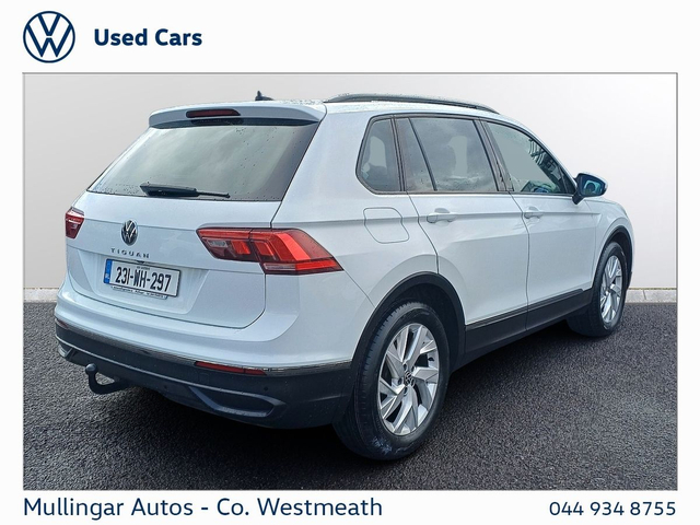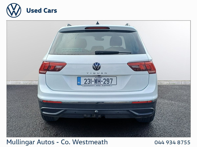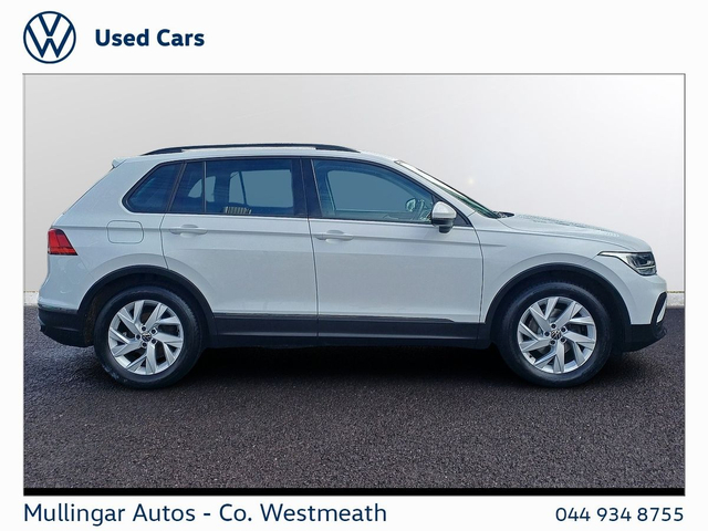 2023 Tiguan Life 2.0 Diesel finished in Pure White. Like new all round, one owner, with full service history with ourselves. Highlights include: Rear view camera, LED running lights, dual climate control, apple carplay/android auto and more. Trade ins welcome - Finance available. At Mullingar Autos, our Used Cars come with: Full vehicle history check. Comprehensive Warranty. Maintenance up to date. Competitive finance available. Outstanding Aftersales care. Want more finance info or reserve the car now? - Available exclusively on www.mullingarautos.ie. Alternatively, call us now on 044 934 8755 or visit us on the Dublin Bridge, Mullingar, Co. Westmeath, N91 P651.
