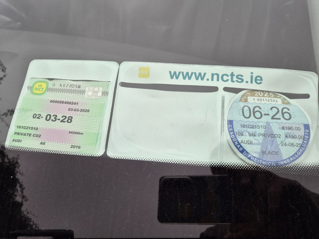 Beautiful Audi A6 2.0 TDI SE Ultra 190PS Automatic with 95k kms, in excellent condition and full service history. The car comes with a brand new NCT to 03/2028 and a 6-month warranty, extendable to 12 months. This Audi has been driven by a family member for the past year and it has not missed a beat in 20k kms. Prior to that, we acquired it directly from its previous elderly owner in Northern Ireland, who had it for almost seven years. No expense has been spared in maintaining the car, backed up with extensive service records since new. The car is having a full service this week, including the automatic transmission service, ensuring that everything is in top shape for the next owner. In addition to the service records, we have the owner's handbooks, two keys, and a clear vehicle history report. We can send high-resolution photos if requested. Please call or email with any questions. About Us Southern Motors is headed by Donal O'Sullivan, who has more than 30 years experience of sourcing vehicles in the UK and Ireland, with a focus on high quality cars with complete service records and a clear and verifiable history. Finance available - please call us or see our website for details and application form. Trade-ins accepted. Inspections and test drives welcomed and encouraged. NATIONWIDE DELIVERY to your front door is possible. Full Service History, 6 Month Warranty, Central Locking, CD Player, Electric Windows, Airbag, Alloy Wheels, Cruise Control, Electric Mirrors, Immobiliser, Full Leather, Automatic Lights, Centre Armrest, Multi-function steering wheel, Satellite Navigation, Traction Control, Metallic Paint, Anti-Theft System, Parking Sensors, Bluetooth, Remote Central Locking, EBD, Electronic handbrake, Folding rear seats, Isofix, History Checked, Finance Checked, Space Saver Spare Wheel, Active Safety Braking / City Brake / Collision Alert, Stop/Start Button, Drive Mode Selector, Dual Zone Climate Control, Daytime Running Lights, 2 Keys, Main Dealer Service History, External Devices Connectivity, Cup holders, Remote boot/hatch/rear door release, Stability control