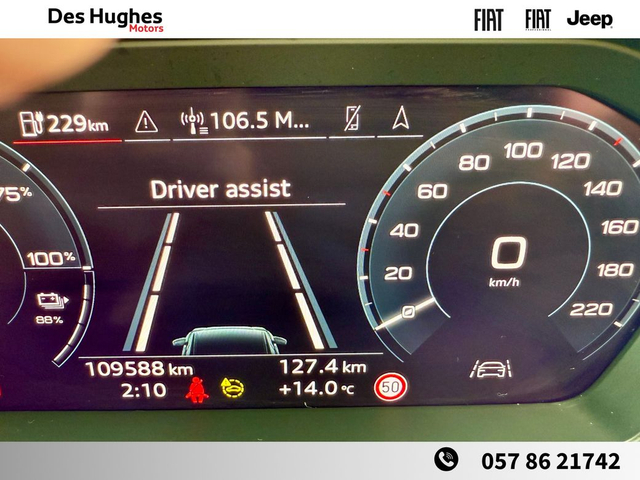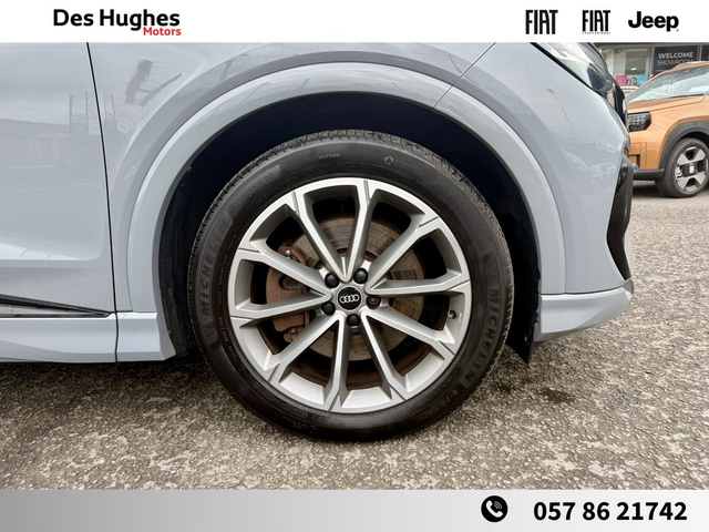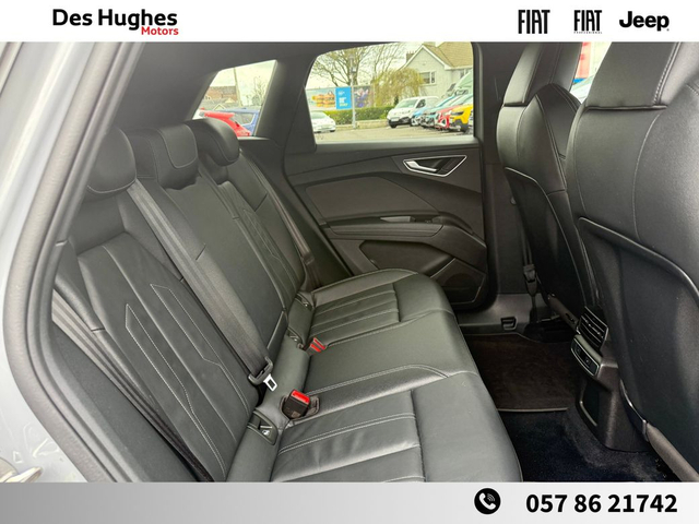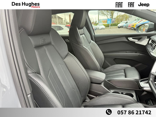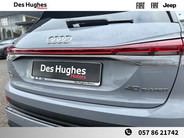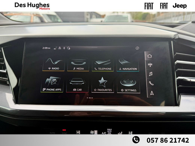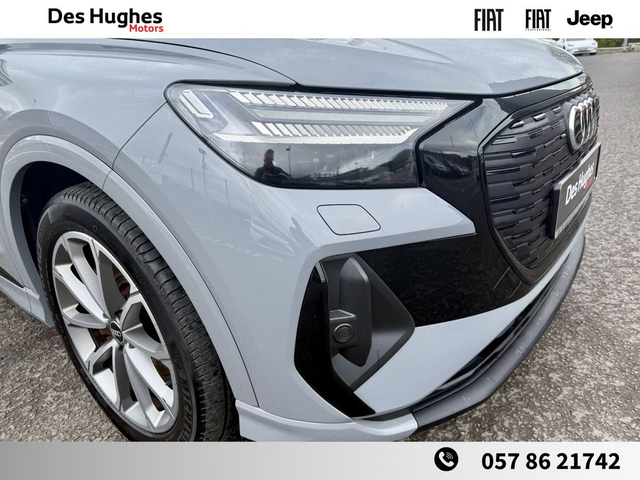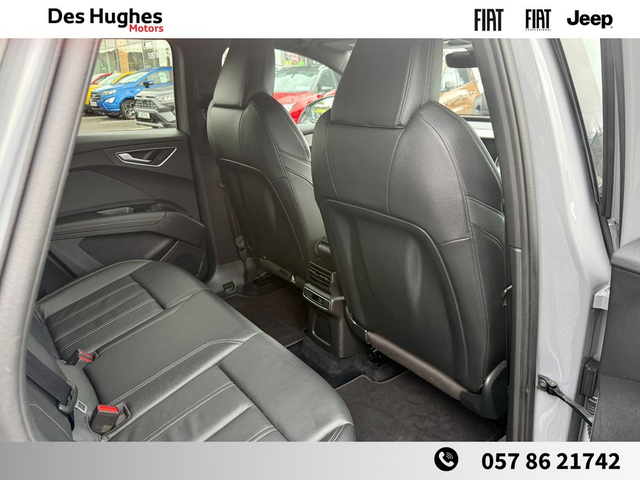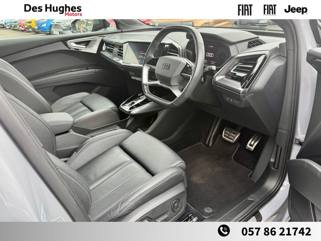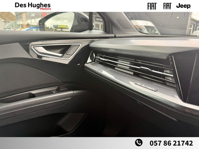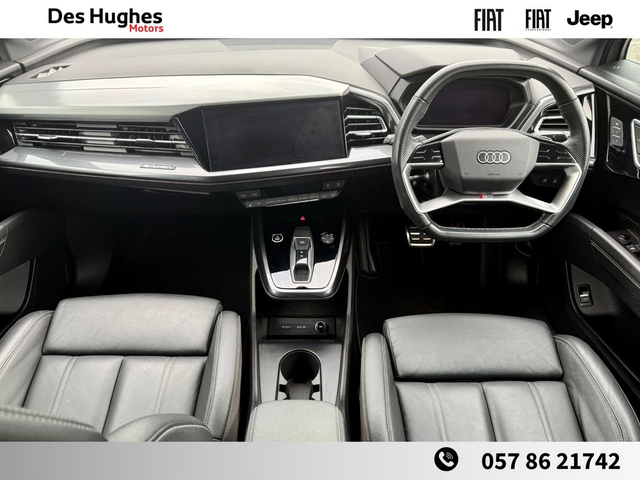 Contact COLIN for anymore info on 087 0541111. Audi Q4 e-tron S-Line Edition 1 model. Sport Suspension, Tool kit, Flat top&bottom with paddles, Black roof rails, 20" 5-V-spoke polygon alloys, Black exterior mirrors, Full paint finish, S line Twin leather pack, Digital Matrix Headlights, S line, Comfort package plus, Ambient Lighting pack Plus, Dynamic Pack. 1 owner from new. 2 years nct. 12 months warranty. 12 months road side assistance. Trade ins welcome. Finance available. Contact COLIN for anymore info on 087 0541111. Established in 1987, Des Hughes Motors brings decades of experience to the motor trade. We proudly represent Fiat, Jeep, and Fiat Professional across Laois and the surrounding counties. Previously serving as the main Toyota dealer in Laois for nearly 30 years, we remain the only authorised Toyota repairer in the county. Whether it’s your first or tenth vehicle purchase from us, we’re committed to ensuring you drive away happy. We operate with a transparent pricing policy — each vehicle is price-checked weekly, taking into account mileage, condition, specification, and warranty to ensure you always get the best value. Every vehicle we sell goes through a comprehensive pre-sale process, including: Full history check Tyre inspection (4mm tread minimum) Full vehicle service Complete valet and clean Opening Hours: Monday–Friday: 9:00 AM – 5:30 PM Saturday: 9:30 AM – 2:00 PM Closed on Bank Holiday weekends Get in touch: 057 86 21742 [email protected] Apply for finance anytime at www.deshughes.ie