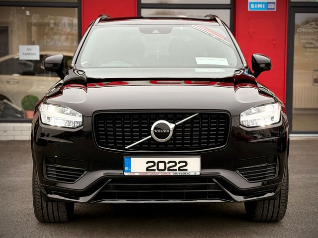 * 2022 Volvo XC90 RECHARGE T8 R-DESIGN AWD JUST AFTER ARRIVING INTO STOCK! * - Straight Sale Discount Price : €55,950 - Retail/Trade in Price : €56,950 Stunning car loaded with extras inside and out including - parking sensors - Leather - Touch Media Screen - Multi Function Steering Wheel - Electronic handbrake - Electric Seat - Heated Seat - Ambient Light - Start/stop button and much more. Finished in stunning BLACK. At Conor Cassidy Cars, our mission is simple: to offer top-quality cars at unbeatable prices. Each vehicle is meticulously inspected by our in-house service team. This includes: • A full service • Warranty • Complete vehicle preparation • Guaranteed NCT pass Safety, reliability, and customer satisfaction are at the heart of everything we do. We accept all trade-ins, which can be redeemed against your new car purchase. As authorized credit intermediaries, we arrange flexible financing with: • AIB • Bank of Ireland • Lombard • Close Brothers • And many more to ensure you get the best available rate. Same-Day Finance Approval • 95% success rate • Weekly payments tailored to your deposit or trade-in Contact our finance manager to explore your payment options today! Additional Benefits Include: • Warranties ranging from 6 to 24 months • A full Cartell history report for peace of mind • Comprehensive service history from new With every car purchase, we guarantee: • A full service • Professional interior and exterior detailing • VRT to the buyer’s county • A new 2-year NCT Why Choose Conor Cassidy Cars? • Nationwide Warranty • Nationwide Delivery • Flexible Financing Options • Trade-Ins Welcome Our Accolades: • All-Ireland Accredited Business • Fastest Growing Used Car Dealership in Connacht • Award-Winning Social Media (2020, 2024) • Best Online Marketing in Connacht (2021) • All-Ireland Winner of “Best Online Marketing” (2021) • Best Online Presentation in Connacht (2023) SIMI-Approved Dealer Buying from a SIMI-accredited member ensures total peace of mind when purchasing a used car. Our reputation is built on trust, performance, and customer satisfaction. Don’t just take our word for it—check out our glowing reviews! Get in Touch Today! Conor: (087) 284 0539 Darren: (086) 450 4943 Pedro: (083) 460 0343 Office: (090) 662 8310 “WHERE QUALITY MEETS VALUE @ CCC.IE” Thank you for considering Conor Cassidy Cars. Located on Lanesborough Road in Roscommon, we’re here to help you find your dream car. Visit our showroom, give us a call, or click the inquiry link to connect with our team. We look forward to serving you! Bluetooth,Centre Armrest,Climate Control,Cruise Control,Electric Mirrors,Electric Seats,Electric Windows,Electronic handbrake,Heated Seats,Air Conditioning,Alarm,Central Locking,Keyless Entry,New Timing Belt,Remote Central Locking,Traction Control,Alloy Wheels,Metallic Paint,Privacy Glass,Android Auto,Apple CarPlay,Multi-Function Steering Wheel,Sat Nav,Selectable Drive Mode,Stop/Start Button,Touch Screen Infotainment System,Adaptive Cruise Control,Automatic Lights,Automatic Wipers,Daytime Running Lights,Isofix Points,Leather Upholstery,Augmented Reality Cockpit,LED Headlights,USB Connection,Cup Holders