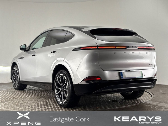 XPENG G6 — RWD Standard Range The XPENG G6 Standard Range delivers advanced electric performance, premium comfort and cutting-edge technology in a sleek coupe-SUV design. With a WLTP range of 470 km, rapid charging capability and XPILOT driver assistance, it’s engineered for modern electric driving. Performance • 185 kW / 251 PS • 440 Nm torque • 0–100 km/h in 6.9 seconds • WLTP range: 470 km • Energy consumption: 16.9 kWh/100 km • RWD drivetrain Charging & Battery • 68.5 kWh LFP battery • 11 kW AC charging (5–100% in 7.3 hours) • Up to 382 kW DC fast charging • 10–80% in 12 minutes • Vehicle-to-Load (V2L) standard Exterior • 20" alloy wheels • LED auto-sensing headlights • Hidden electric door handles • Rain-sensing wipers • Electric tailgate • Privacy glass (rear) • Panoramic glass roof with UV/thermal insulation Interior & Comfort • Premium leather seats • Heated & ventilated front seats • 10-way electric driver seat • 10-way electric passenger seat • Seat memory & welcome function • 256-colour ambient lighting • Wireless charging (2 × 50W) • 571 L boot / 1374 L seats?down Technology & Safety • 15.6" central touchscreen • 10.25" digital dashboard • Apple CarPlay & Android Auto • XPILOT driver assistance: ACC, LCC, ATC • Parking suite: 360° camera, Auto Parking, Remote Parking, Summon • Blind Spot Detection, Lane Keeping, AEB, TSR • 7 airbags • PM2.5 filtration & air purification Kearys XPENG Eastgate – Your XPENG Destination in Cork Address: EastGate Business Park, Little Island, Cork, T45 PD79 Phone: (021) 240 8611 Website: www.kearys.ie Opening Hours: Mon–Fri: 9am–6pm Saturday: 10am–5pm Why Buy From Kearys? • Trusted main XPENG dealer • Transparent one-price policy • Flexible finance options • Nationwide delivery • Trade-ins welcome