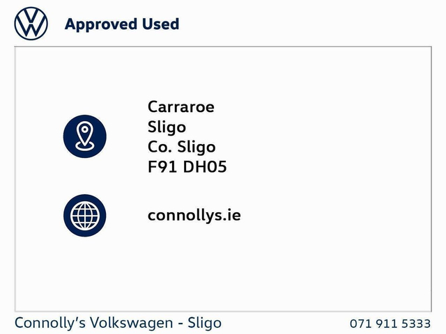 | Contact info: | Connolly's Volkswagen Sligo Carraroe Sligo County Sligo Ph: 071-9115333 |