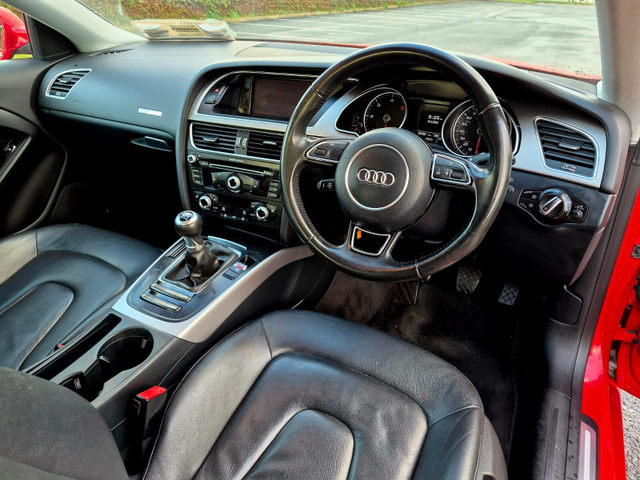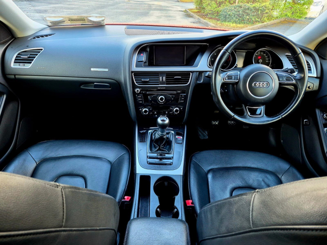 2013 AUDI A5 2.0 TDI SE WITH S LINE ALLOYS FULL LEATHER CRUISE CONTROL BLUETOOTH PARKING SENSORS ISOFIX LOW TAX MANY MORE EXTRAS €7,999 IS THE STRAIGHT SALE PRICE TRADE IN WELCOME AT €8,999 THIS CAR COMES SERVICED WITH WARRANTY CALL SALES FOR MORE INFORMATION Climate control, Electric handbrake, Rain sensor, Spare tyre, Cruise control, Rear parking sensors, Remote boot release, Start-stop system, Alloy wheels, Leather interior, Leather steering wheel, Tinted windows, Auto lights (dusk sensor), Daytime running lights, LED headlights, Anti collision system, Emergency brake assist, Remote central locking, Immobilizer, Isofix, Tyre pressure monitor