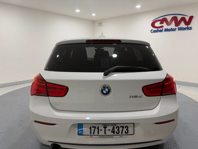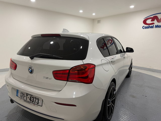 CONTACT PAUL ON 0872828700 FOR MORE INFO ON THIS 2017 BMW 118D SPORT 5DR**NEW 18''ALLOYS & TYRES JUST FITTED**SAME DAY FINANCE ARRANGED**PART EX WELCOME** 12 Month Warranty, Trade in accepted, Central Locking, Electric Windows, Airbag, Alloy Wheels, Fog Lamps, Privacy Glass, Automatic Wipers, Automatic Lights, Centre Armrest, Luggage Cover, Multi-function steering wheel, Satellite Navigation, Traction Control, Anti-Theft System, Bluetooth, Remote Central Locking, EBD, Folding rear seats, Six speed transmission, Isofix, Roadside assistance, History Checked, Finance Checked, Wireless Smartphone Control, Active Safety Braking / City Brake / Collision Alert, Stop/Start Button, External Devices Connectivity, Cup holders, Remote boot/hatch/rear door release, Stability control