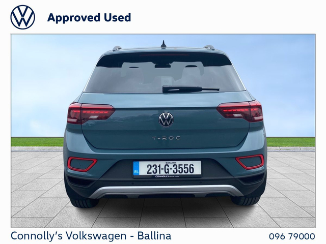 DESCRIPTION: Now available at Connolly’s VW Ballina: The Volkswagen T-Roc is a stylish and versatile compact SUV that combines sporty design with everyday practicality. Offering a comfortable and composed drive, efficient performance, and a slightly elevated driving position, it’s well suited to both urban and motorway journeys. Inside, the T-Roc features a modern, well-built cabin with smart technology and ample space, while maintaining Volkswagen’s strong reputation for quality and reliability, making it a great all-round choice for a wide range of drivers. KEY FEATURES • Digital cockpit display, putting navigation and driving info directly in your line of sight • Apple CarPlay & Android Auto • Reverse parking sensors, Making Parking Effortless • Alloy wheels • Cruise control, giving comfortable motorway driving • Climate Control DEALERSHIP BENEFITS Buying from Connolly’s Volkswagen Ballina gives you peace of mind with: Fully inspected vehicles Minimum 12-month warranty Flexible finance packages available Trade ins welcome Nationwide Delivery Available Call our sales team to arrange a test drive or a personalised walkaround video.
