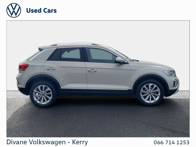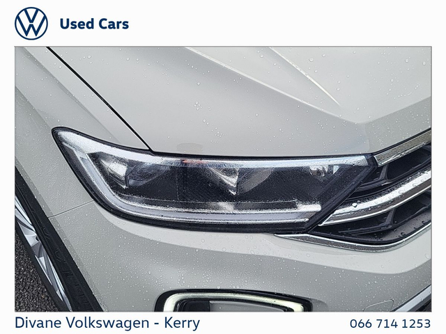 T-ROC STYLE 1.0 TSI M6F 116 BHP IN ASCOT GREY €210 ROAD TAX. • Radio • 12v power outlet • ABS • Immobilizer • Cruise control • Adaptive cruise control • Traction control • Digital instrument panel • Seat belt warning • Fog lights • Daytime running lights • Central locking • Roof rails • Side airbag • Armrest • Sports seats • Lumbar support • Leather steering wheel • Multi-function steering wheel • Air conditioning • Electric side mirrors • Tinted windows • Rain sensor • Electric windows • Stability control • Emergency brake assist • Tyre pressure monitor • Isofix • Voice control • Electric handbrake • Emergency tyre repair kit • Hill hold assist • Anti collision system • Bluetooth • Start-stop system • Lane departure warning • USB connection (front) • Parking assistance • Speed limiter • Touch screen display • Apple CarPlay • Android Auto • Lane change assist • Ambient lighting • Front parking sensors • Rear parking sensors • LED headlights • Auto lights (dusk sensor) • Remote central locking • Keyless entry • Driver-side airbag • Passenger-side airbag • Climate control • Dual zone climate control • Alloy wheels • Full Service History • VW Bank Finance Available