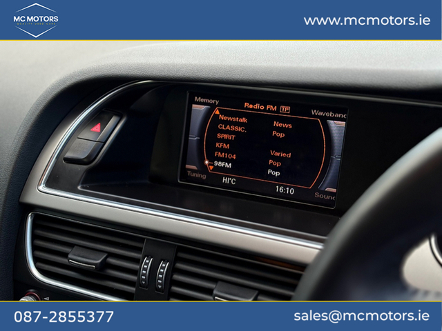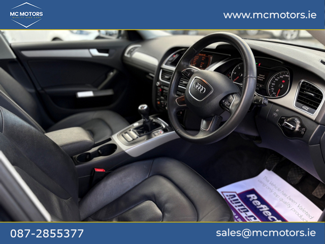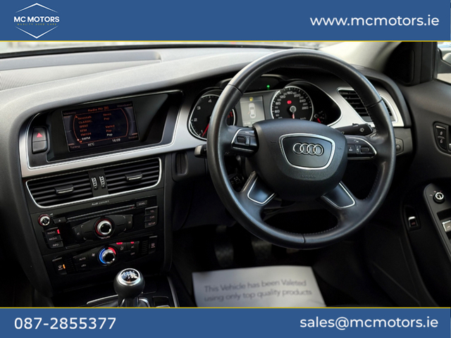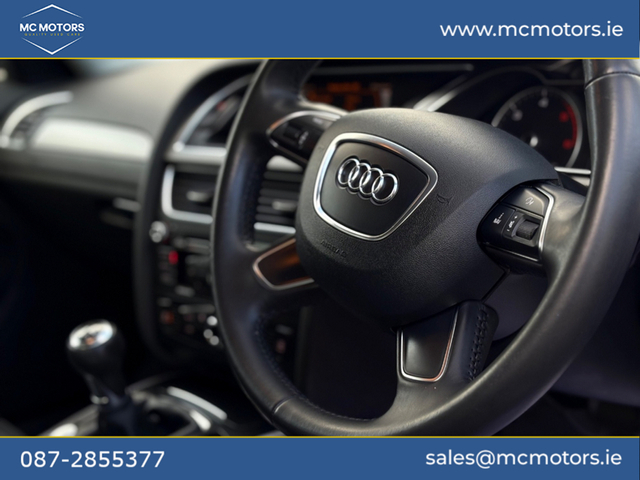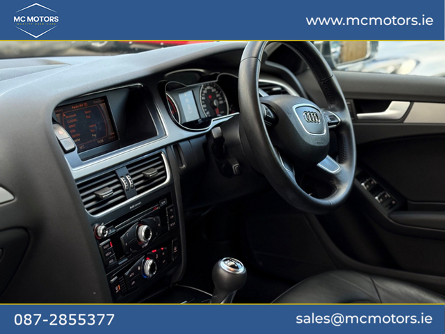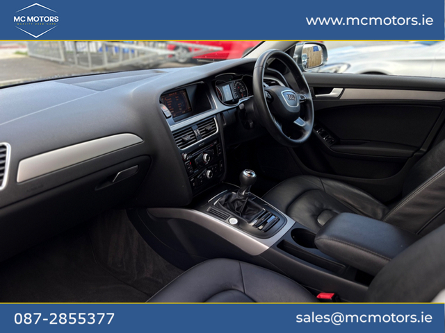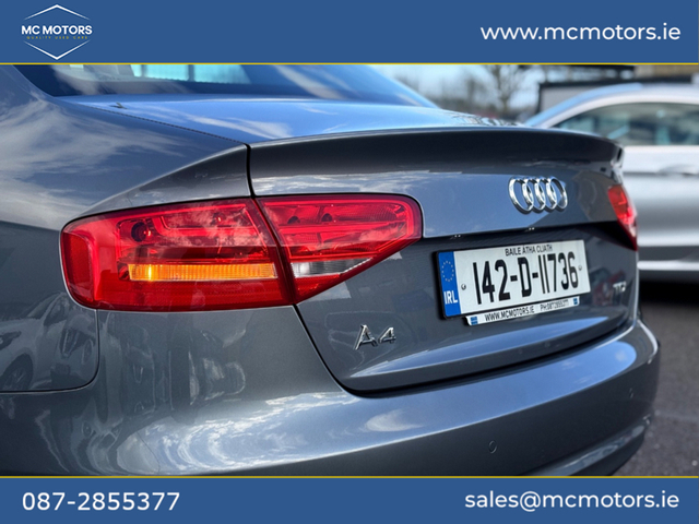 2014 AUDI A4 2.0 DIESEL 181,000 KMS 2 PREVIOUS OWNERS 2 KEYS NCT 12/26 - BLUETOOTH - PARKING SENSORS - FULL LEATHER INTERIOR - AUTO LIGHTS Please call beforehand to check availability and to book an appointment Price €10,950 This vehicle will come with a 6 month warranty. All our cars are fully history checked, come with a valid NCT, serviced and warranted to ensure complete piece of mind. Contact Mark for any more info call,text,WhatsApp or email. Video available upon request. [email protected] MC Motor Company is located in Ashbourne just minutes from Dublin airport