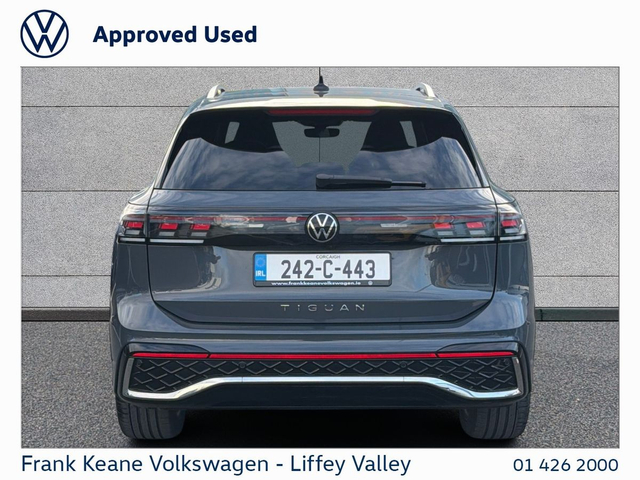 FRANK KEANE - Customer Driven Since '67. TIGUAN R-Line at Frank Keane Volkswagen Liffey Valley, We have this 2024 Volkswagen Tiguan R-Line with only 17,042km. Finished in Dolphin Grey Metallic with an R-Line” Cloth Soul Black Seats. Experience complete confidence with the Frank Keane Volkswagen Optional Pre-Owned Vehicle Protection Pack — including a 24-month warranty, 3-year Return to Invoice (RTI) investment protection, and 3-year paint, glass, and upholstery protection with LifeShine. Premium cover, expertly designed to protect your vehicle and your investment. To Learn more, speak to one of our Sales Team in Frank Keane Volkswagen Liffey Valley today. Specification that Includes • Sunroof, • 360 Park Camera, • Massage Front Seats, • Diamond Cut Alloys Wheels, • Park Camera, • Privacy Glass, • Silver Roof Rails, • 3-Zone Climate Control, • LED Plus Headlamps, • Illuminated Moulding Front Grille, • Ambient Lighting, • Black Headlining, • Heated Front Seats, • Heated Seats Rear, • Heated Steering Wheel, • Cornering Lights, • Sport Front Seats, • 12.9" Large Infotainment Display, • Digital Cockpit Dials, • Apple Carplay and Android Auto, • Rear View Camera, • ISOFIX Child Seat Mounts • and much more! Please contact our Sales Team today for a Personalized Video of this Car, Digital Part Exchange Valuations and Tailored Funding Options to meet your needs on 01-4262000 or email [email protected] Frank Keane Volkswagen offers the highest levels of value and customer experience across both sales and service. Located at Liffey Valley Motor Mall, we ensure all our used vehicles are prepared to the highest of standards and come with a minimum of 12 months warranty. Call us 01-4262000 to arrange an appointment with our Sales Team. FRANKKEANEVOLKSWAGEN.IE