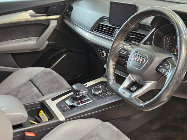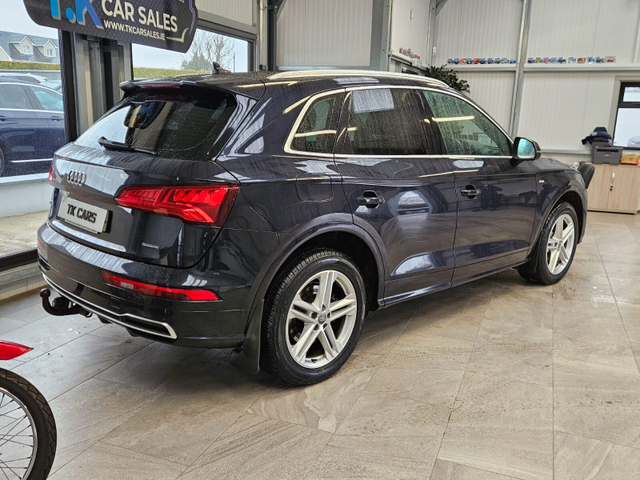TRADE IN PRICE €31950 NEW INTO STOCK.201 AUDI Q5 2.0 DIESEL QUATTRO (4WD) AUTOMATIC S-LINE EDITION. IN EXCELLENT CONDITION WITH 201,000 KMS (117,000 MILES-MOTORCHECK HISTORY REPORT VERIFIED). THIS EYE CATCHING Q5 S-LINE FINISHED IN CARBON GREY COMES EQUIPPED W/ ALLOYS,FOGS,CLIMATE CONTROL,CRUSE CONTROL,SAT-NAV,FLAWLESS HALF LEATHER LEATHER WITH HEATED DRIVER AND FRONT PASSENGER SEATS,CHROME PACK,BLUETOOTH WITH AUDIOSHARE AND PRIVACY GLASS- SAFETY FEATURES INC-5 STAR NCAP SAFETY RATING,SIDE IMPACT PROTECTION BEAMS,SEAT BELT PRE-TENSIONERS,MULTIPLE AIRBAGS INC AND ISOFIX POINTS FOR BABY SEATS. IT HAS BEEN METICULOUSLY MINDED AND THIS IS EVIDENT THROUGHOUT AND IT IS AN ABSOLUTE CREDIT TO THE PREVIOUS OWNER. IT HAS JUST BEEN FULLY CHECKED OVER AND SERVICED BY OUR OWN MECHANIC AND COMES WITH A WARRANTY AND A BRAND NEW NCT. FOR MORE INFO CALL TONY 0876665151 FERGAL 0874403001 Climate control, Electric boot, Electric handbrake, Heated seats, Lumbar support, Rain sensor, Split rear seats, Gear shift paddles, Android Auto, Apple CarPlay, USB connection (front), Wifi, Cruise control, Hill hold assist, Navigation system, Front parking sensors, Rear parking sensors, Remote boot release, Roof rails, Speed limiter, Start-stop system, Voice control, Alloy wheels, Leather steering wheel, Spoiler, Sports seats, Ambient lighting, Auto lights (dusk sensor), Daytime running lights, LED headlights, Anti collision system, Emergency brake assist, Remote central locking, Immobilizer, Isofix, Tyre pressure monitor, Emergency tyre repair kit, 4WD, Sport suspension