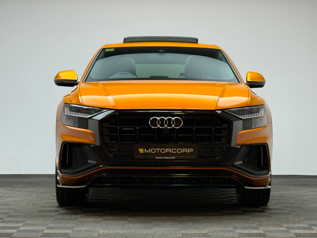 This 2020 Audi Q8 is finished in Dragon Orange metallic with a black / rock grey Valcona leather interior, and comes equipped with: - Upgraded Alloy Wheels - Adaptive Air Suspension - S Line Package - Panoramic Glass Roof - Fully Adjustable Power Seats w/ Memory Function - 4 Way Adjustable Lumbar Support - Heated Front Seats - High Gloss Styling Package - Audi Pre Sense - Lane Departure Warning - Cruise Control - Dynamic LED Matrix Headlights - Door Entrance LED Projectors - Parking Aid Plus w/ 360 Cameras - Premium 3D Sound System - Audi Connect Navigation & Infotainment - Hill Hold Assist - Quattro & Much More! Viewing is by appointment only. Trade ins are welcome. All vehicles come with a MotorCheck comprehensive car check. Competitive finance options available. Extended warranty is available. Please contact us on (01) 727 0489 or WhatsApp at 087 430 4637. Follow us on Facebook & Instagram @ MotorCorp! All UK registered vehicles will be delivered with a ROI registration number & ROI registration plates, the total VRT amount is included in the advertised price. While we aim to provide accurate and up-to-date specifications for the vehicle above, please be advised that they are based on our best understanding and available information. To ensure they meet your expectations, we recommend verifying and confirming the specifications during your viewing. Your satisfaction is our priority, so feel free to contact us with any questions or for more information. 771 3929 75 Bluetooth,Centre Armrest,Climate Control,Cruise Control,Electric Mirrors,Electric Seats,Electric Windows,Electronic handbrake,Sports Seats,Sunroof,Air Conditioning,Alarm,Anti-Theft System,Central Locking,Keyless Entry,Multiple Air Bags,Parking Sensors,Remote Central Locking,Traction Control,Brake Assist System,Alloy Wheels,Metallic Paint,Privacy Glass,Rear Spoiler,All-Leather Seats,Android Auto,Apple CarPlay,Dual Zone Climate Control,Heated Front Seats,Motorised Tailgate,Multi-Function Steering Wheel,Sat Nav,Selectable Drive Mode,Sport-Tuned Suspension,Touch Screen Infotainment System,Wireless Smartphone Control,Autonomous Emergency Braking,Automatic Lights,Blind Spot Detection,Front Parking Sensors,Hill-Start Assist,Isofix Points,Parking Assistance,Reversing Camera,Leather Upholstery,Panoramic Sunroof,Widescreen Cockpit,LED Intelligent Headlights,360 Deg Cameras,Rear Parking Sensors,USB Connection,Cup Holders,Remote Door Release,Stability Control