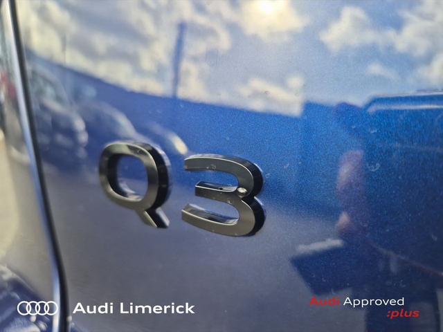 Audi Q3 SUV S line TFSI110 kW S tronic • Audi Drive Select • Audi Stop/Start • Adaptive Cruise Control • 19"Alloys • Metallic Paint • Tinted Windows • Headlining in Black Cloth • Heated Seats • Lumbar Support • Hill Hold Assist • Power Boot Opening and Closing • Reverse Camera • Front and Rear Park Sensors • Apple CarPlay • Audi Smartphone Interface • Audi Lane Assist • Rear Dynamic Indicators • Keyless Go