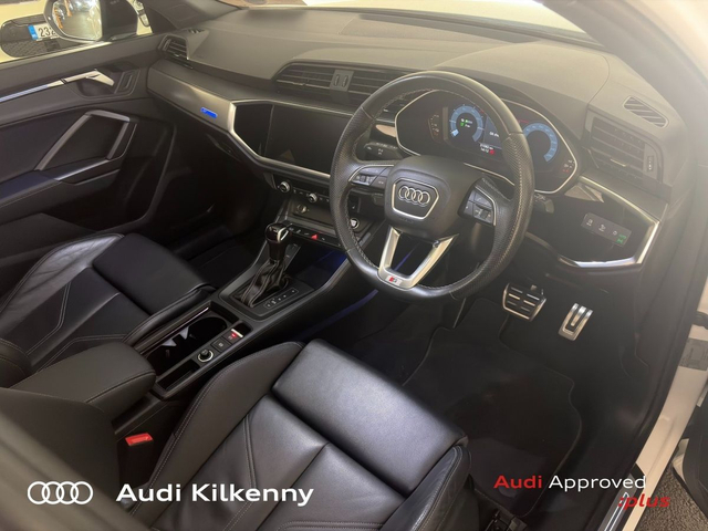 Audi Q3 45 TFSI E S Tronic S line Black Edition with 20 Inch Alloys, Sunroof etc "Price Includes €2,000 Scrappage" • Audi Music Interface • Audi Sound System • Bluetooth Interface • Touchscreen Stereo • Audi Drive Select • Cruise Control • 20"Alloys • Black Styling Pack • High Gloss Black Grille • Ambient Lighting • Privacy Glass • Heated Seats • Leather Interior • Lumbar Support • Auto Lights and Wipers • Daytime Running Lights • Immobilizer • ISO Fix • LED Headlights • Multiple Airbags • Power Boot Opening and Closing • Reverse Camera • Remote Central Locking • Full Service History • Front and Rear Park Sensors • Audi Virtual Cockpit • Keyless Go