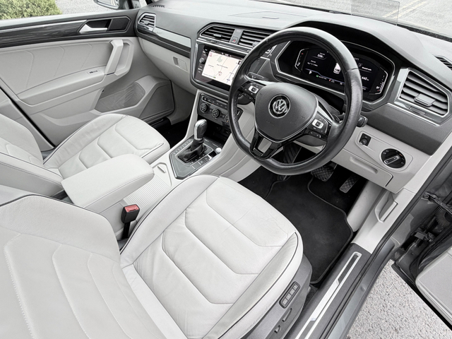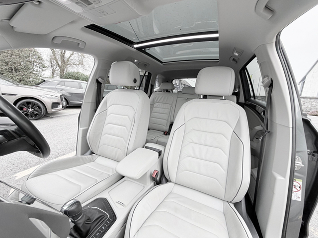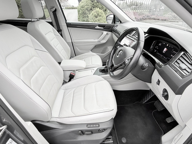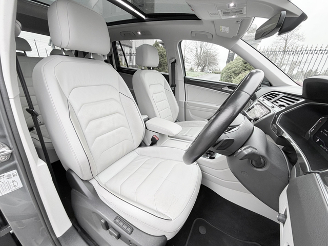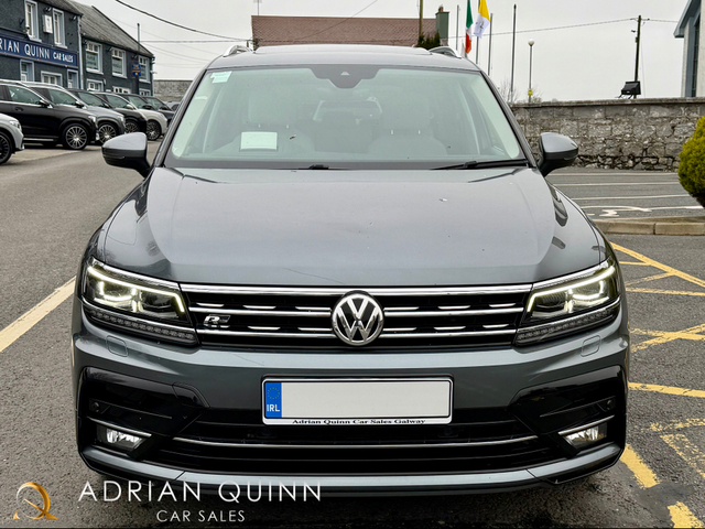 2019 (192) VW TIGUAN ALLSPACE 2.0 TDi 150 BHP DSG AUTO 7 SEATER...PLATINUM GREY METALLIC...FULL R-LINE EXTERIOR STYLING PACK...REAR PRIVACY GLASS...20 INCH VW SUZUKA ALLOYS FINISHED IN DARK GRAPHITE...ALUMINIUM ROOF RAILS...FULL STORM TITANIUM GREY VIENNA LEATHER INTERIOR WITH BLACK TRIM AND CARPETS...FULL PANORAMIC ELECTRIC GLASS SUNROOF...FRONT ERGO COMFORT SEATS...FULLY ELECTRIC FRONT SEATS WITH DRIVERS MEMORY...HEATED FRONT SEATS...HEATED STEERING WHEEL...TECHNOLOGY PACK...HEAD UP DISPLAY...VW REVERSE ASSIST CAMERA...VW PARK ASSIST PRO WITH SELF PARKING AND VISUAL DISPLAY...THIRD ROW FOLDING SEATS...VW DISCOVER TOUCH SCREEN SATELLITE NAVIGATION SYSTEM...VW APP CONNECT...APPLE CAR PLAY...SMART PHONE INTEGRATION...BLUETOOTH PHONE SYSTEM...BLUETOOTH AUDIO STREAMING...VW ADPATIVE CRUISE CONTROL...DYNAMIC ROAD SIGN DISPLAY...FORWARD COLLSION WARNING WITH BRAKE ASSIST...LANE CHANGE ASSIST...CROSS TRAFFIC ALERT...BLIND SPOT ASSIST...REAR TRAFFIC ALERT...VW ADAPTIVE LED HEADLIGHTS...AUTO ON LIGHTS...HIGH BEAM ASSIST...DUAL ZONE AUTO CLIMATE CONTROL...AIR CONDITIONING...MULTIPLE AIR BAGS...ISOFIX...TRACTION CONTROL...AMBIENT INTERIOR LIGHTING PACK...LEATHER MULTI FUNCTION STEERING WHEEL WITH PADDLE SHIFT...VW COMFORT ACCESS WITH KEYLESS ENTRY AND START...AUTO DIMMING REAR VIEW MIRRORS...AUTO BOOT LID...FRONT CENTRE ARM REST...ELECTRIC FOLDING HEATED EXTERIOR MIRRORS...DUAL USB PORTS...
