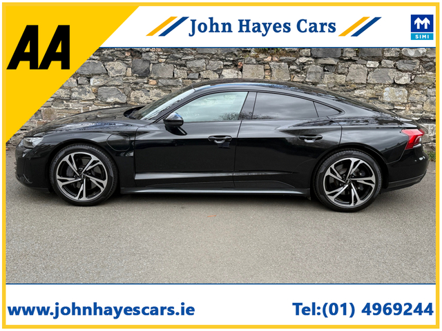 Beautiful condition one owner 2023 Audi eTron GT Quattro 4WD Black Edition with panoramic roof and upgraded 20" Black/Silver alloys. Looks stunning in Mythos Black with black leather interior and completely shadowlined. Only 45000 kms from new with full Audi service history. Fantastic car to drive. Fully prepared for sale. SIMI and AA registered dealer. 12 month comprehensive warranty with option to increase to 24 months. Appointents for viewings on 0879068112 or [email protected] please. Great specification throughout with full leather seating, leather multi function steering wheel, daytime running LED headlights, apple car play, android auto, cruise control, park assist, USB connect with full media play, reverse camera, centre armrest, Audi EV technology, sun protect rear glass panoramic roof, memory function fully electric seating, Audi Pre Sense, iSofix, sun protect rear glass, Google maps Tried and trusted John Hayes Cars level of attention given to all of our vehicles. John Hayes Cars, a very well known and trusted family dealer in high quality vehicles since 1986 and based in Rathmines since 1998. For extra peace of mind for our customers we also provide a free car history report for all of our vehicles. Thank you. 12 Month Warranty, 2 Keys