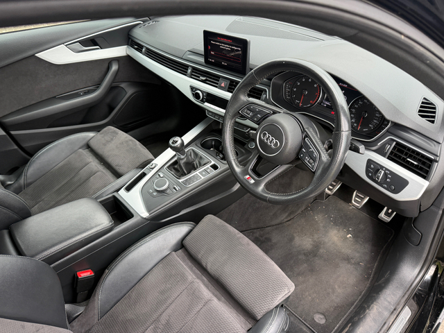AUDI A4 1.4 TSFI MANUAL HIGH SPEC SLINE MODEL METALLIC BLACK WITH BLACK SLINE INTERIOR SERVICED REGULARLY FOUR NEW TYRES SPEC INCLUDING LEATHER MULTIFUNCTION STEERING WHEEL CRUISE CONTROL 18 SLINE ALLOY WHEELS CLIMATE CONTROL AUDI MMI MEDIA SYSTEM PARKING SENSORS KEYLESS START TWO ORIGINAL KEYS AND ALL HANDBOOKS PRESENT TAXED UNTIL JULY NCT VALID MAY 2028 THE CAR WILL BE SUPPLIED FULLY SERVICED WITH NEW NCT AND THREE MONTHS WARRANTY Central Locking, CD Player, Electric Windows, Airbag, Cruise Control, Centre Armrest, Multi-function steering wheel, Satellite Navigation, Traction Control, Metallic Paint, Anti-Theft System, Parking Sensors, Bluetooth, EBD, Isofix, Apple Car Play, Android Auto, Active Safety Braking / City Brake / Collision Alert, Stop/Start Button, External Devices Connectivity, Cup holders, Remote boot/hatch/rear door release, Stability control