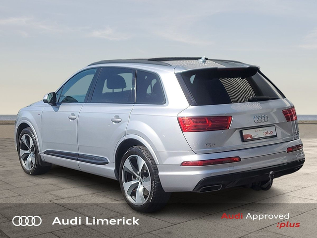 Audi Q7 45 TDI quattro Tiptronic S Line • Audi Music Interface • Audi Drive Select • Audi Stop/Start • Cruise Control • S-Line Body Styling • Sunroof • Dual Climate control • Multi-Function Steering Wheel • Privacy Glass • Electrically Adjustable Seats • Heated Seats • Leather Interior • Lumbar Support • Auto Lights and Wipers • LED Headlights • Power Boot Opening and Closing • Reverse Camera • Front and Rear Park Sensors