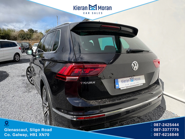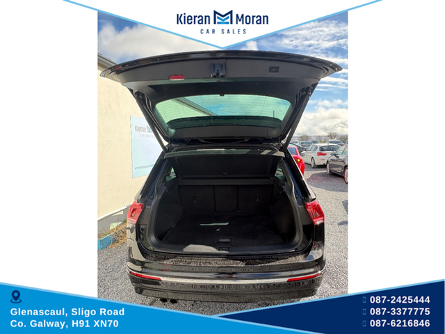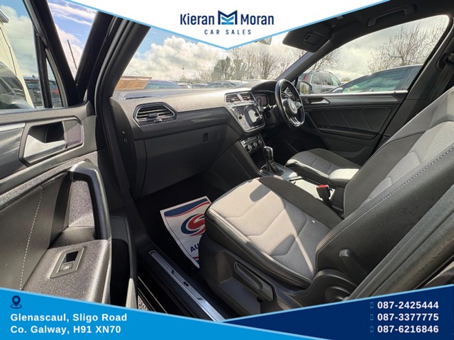 R-LINE 2.0TDI TIGUAN!!!! Beautiful Volkswagen Tiguan R-Line Auto in stock and now for sale. This amazing car offers style, performance and comfort with modern practicality and build quality that Volkswagen is known for. Finished in Black and with 19" Diamond Cut Volkswagen Alloy Wheels, this car comes with the stunning R-Line Styling, an Automatic Gearbox, Parking Sensors, Reversing Camera, 360 Cameras, Auto Lights, Auto Wipers, Electric/Heated Mirrors, Electric Windows, Darkened Rear Windows, Powered Sunroof with Powered Shade, Powered Tailgate and Front Foglights. Features Inside Include Full R-Line Grey/Black Interior Heated Front Seats R-Line Leather Steering Wheel Multifunction Steering Wheel Bluetooth Handsfree Adaptive Cruise Control Speed Limiter Full LED Dash Display Multiple Dash Display Options Adjustable Steering Column Push Button Start Full LED Touch Screen Centre Console Apple CarPlay AndroidAuto MirrorLink AM/FM/DAB Radio 2x USB Slots Aux Slot Full Sat-Nav Auto Air-Conditioning Dual Zone Control 12v Plugs Auto Stop/Start Function Auto Hold Function Parking Assist Drive Mode Selection 2x Cup Holders Adjustable Arm Rest Isofix Rear Seats Rear Centre Armrest Spacious Boot Area Privacy Boot Cover This R-Line Tiguan is in superb condition both inside and outside, driving perfectly along the road and now available to test drive. A must see car to appreciate. For more information and all our stock visit www.kieranmorancars.ie Or Call 0872425444 0873377775 0876216846
